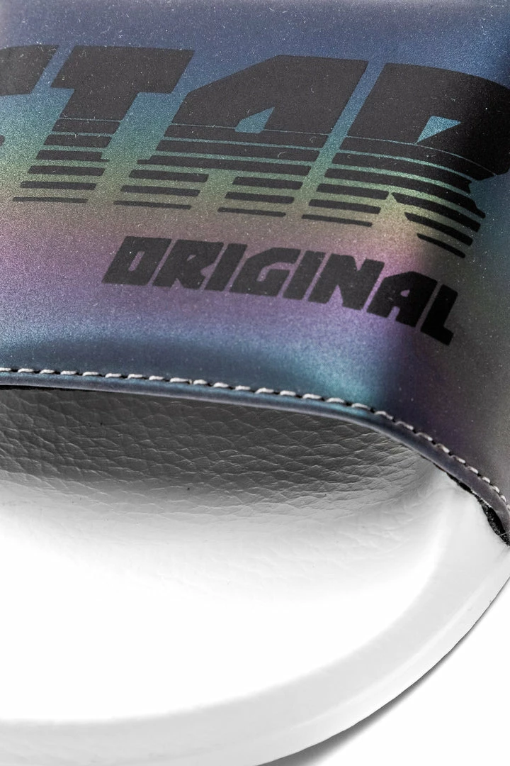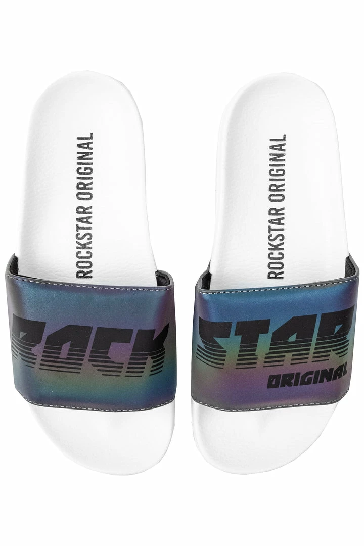 Rockstar Original Kid’s slides in white. Featuring a RSO logo with reflective detailing. Accenting comfortable synthetic upper and outsole for all day wear.