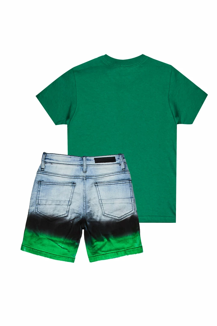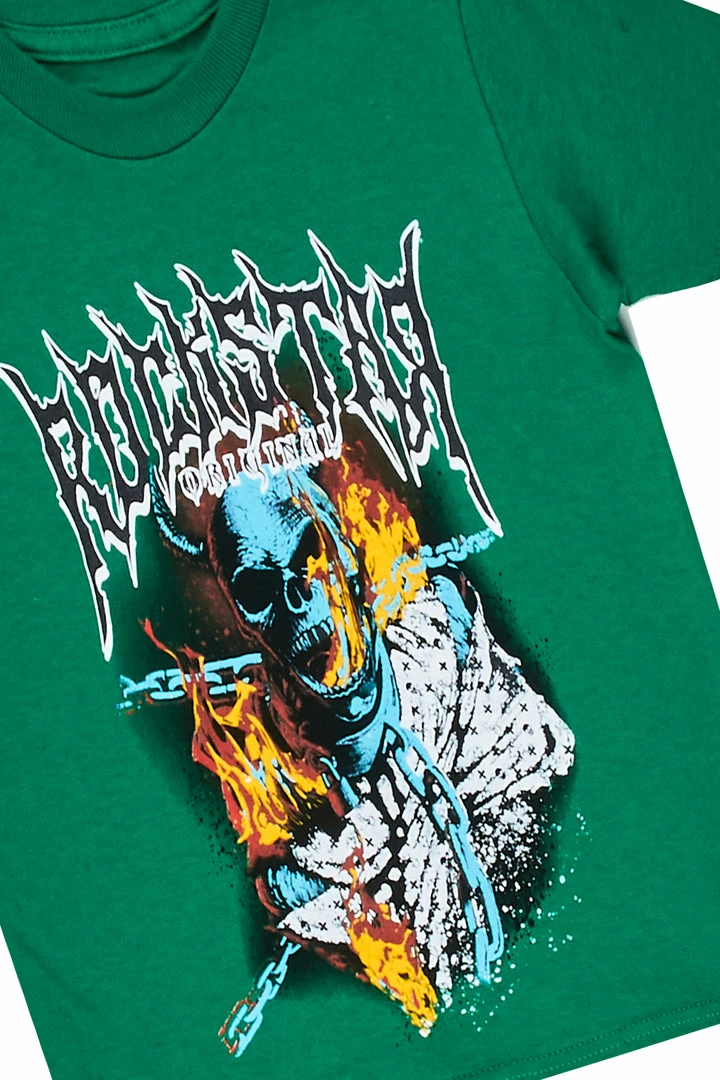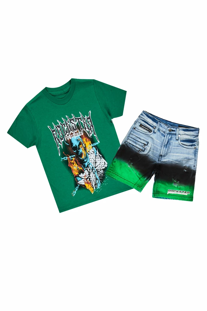 Rockstar Original Boy’s two-piece short set in green. Featuring printed RSO logos with bold graphics to match and custom spatter paint detailing on the top and bottoms. Tee is designed with a crew neckline and relaxed fit while bottoms accent distressed detailing, an elastic waistband, high quality zipper coin pockets and easy slide clasp closure. Your Mini will look good and feel better all day long!