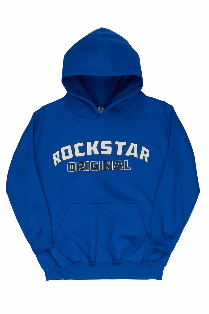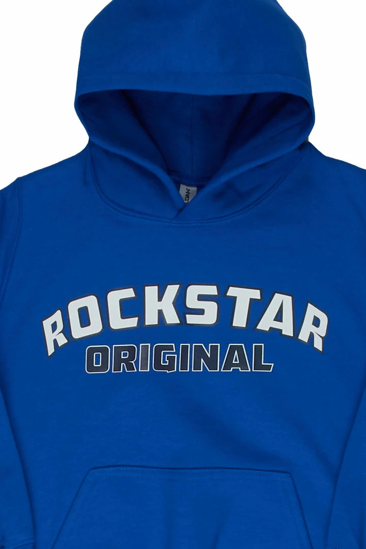 Rockstar Original Boy’s hoodie in royal blue. Featuring a classic printed RSO logo across the chest. Accenting a front pocket with elastic ribbed cuffs and hemline. This must-have hoodie is designed with softest premium cotton for the perfect all day staple piece for your ‘Lil Rockstar.