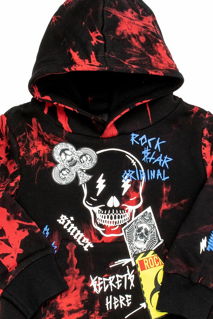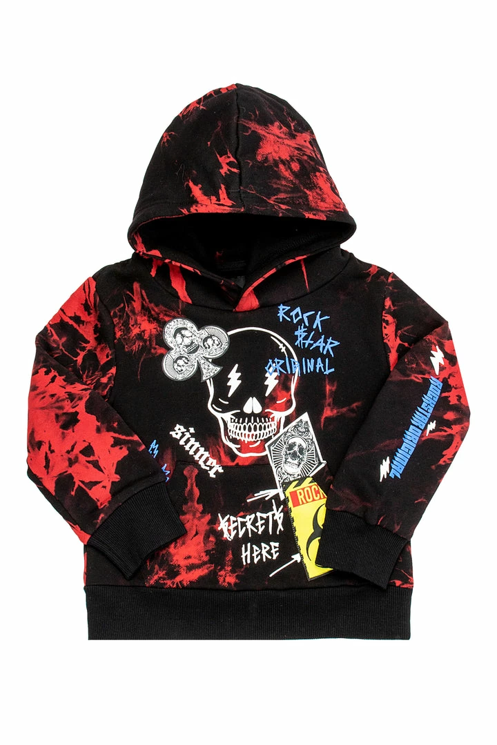 Rockstar Original Boy’s hoodie. Featuring a RSO sleeve logo and tie dye wash with graphic prints throughout. This hoodie is designed with a front pocket, drawstring hood and premium threading for maximum comfort and unique style.
