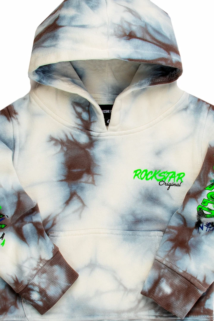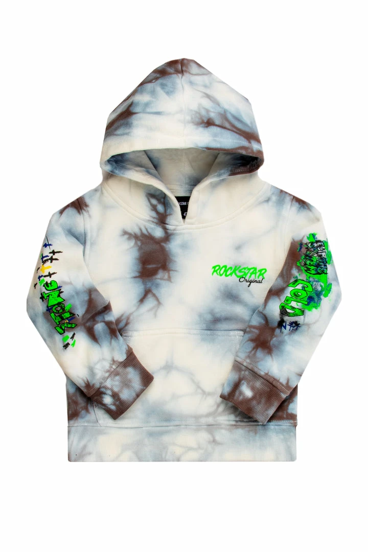 Rockstar Original Kid’s hoodie featuring a marble tie dye wash and multi color graphic print detailing. Accenting a RSO logo, front pocket and premium cotton threading to keep your Mini Me cool, comfortable and casual.