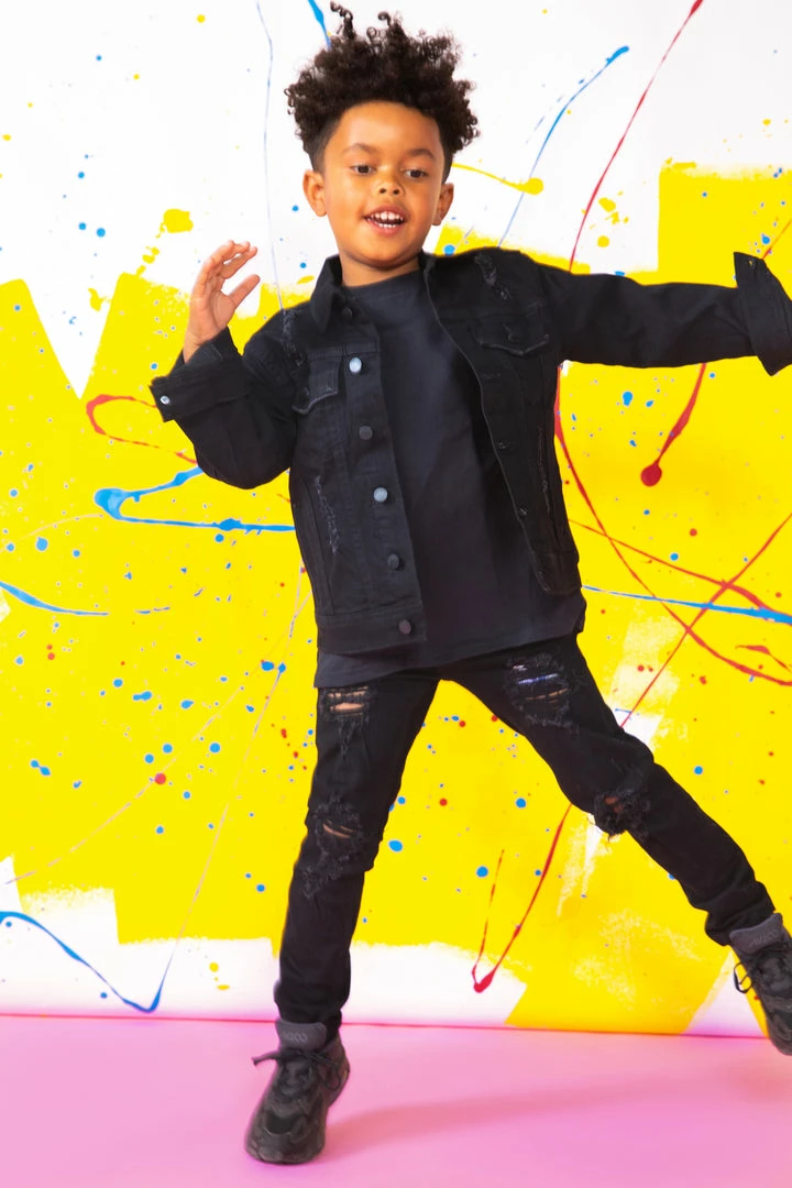 Rockstar Original boy’s denim featuring distressed and ripped details with a high quality zipper coin pocket.