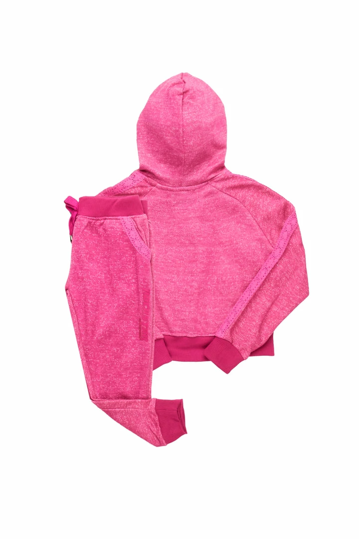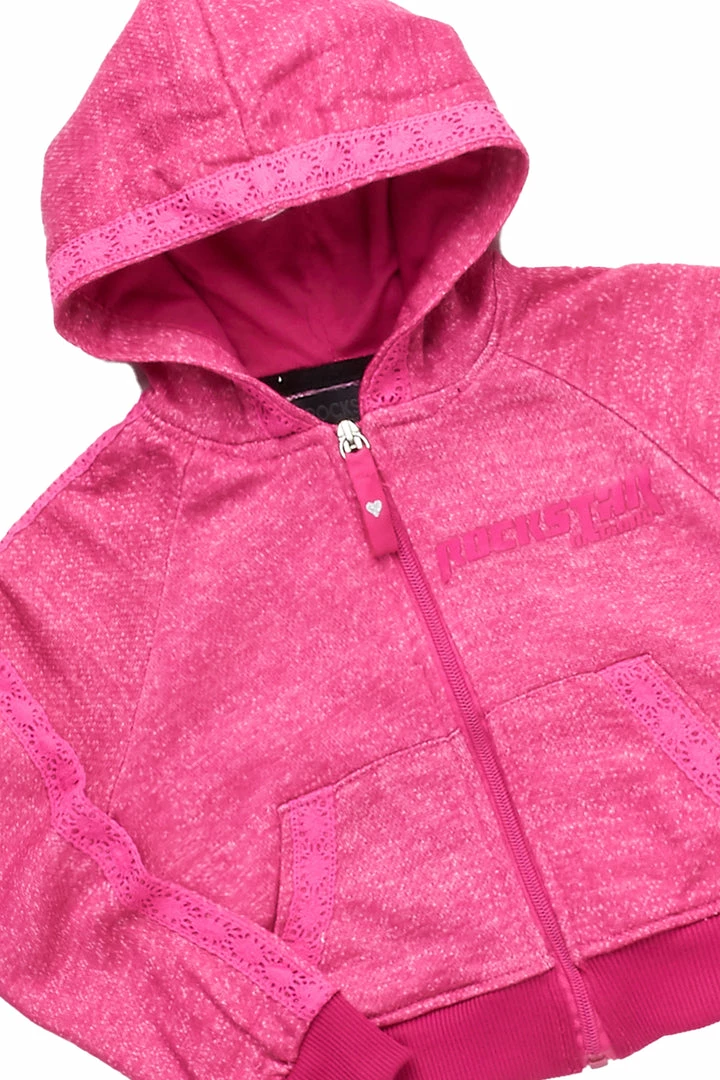 Rockstar Original Girl’s two-piece track set in raspberry pink. Featuring embroidered ribbon designing throughout, front pockets and a high quality zipper closure on jacket and drawstring waistband on pant. This two-piece ensemble is the perfect OOTD for your Mini Me in the spotlight or on the playground!ย