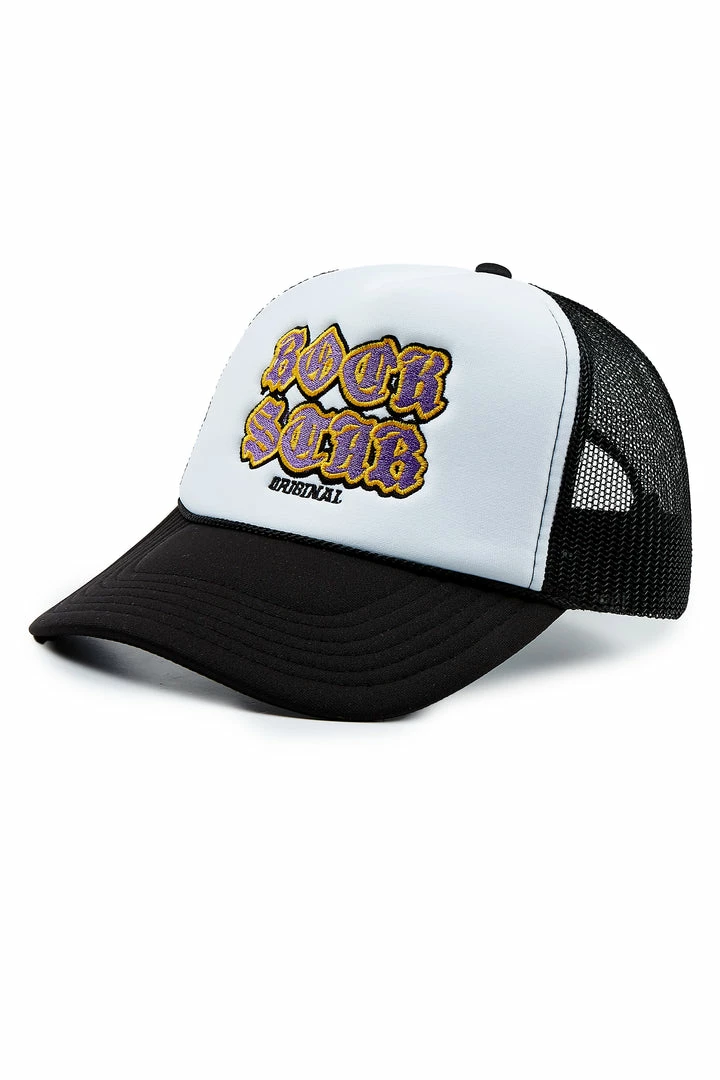Rockstar Original Men’s hat in black. Featuring an embroidered varsity RSO logo with a trucker design. Made as a lightweight wear for a comfortable all day staple piece.