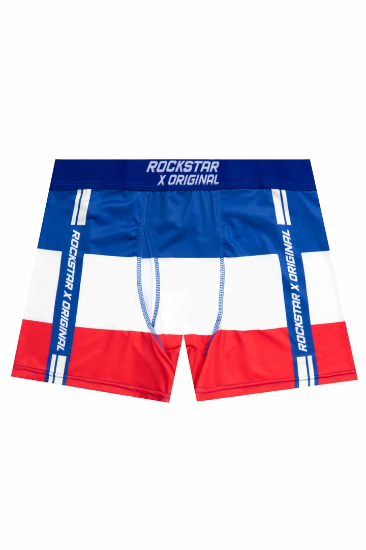 Rockstar Original men’s boxer briefs featuring a color block design with RSO logo across waistband and sides.