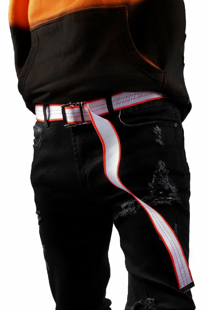 Rockstar Original men’s belt featuring an industrial design with RSO logo all throughout. Premium metal buckle clasp closure.