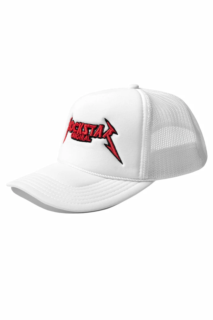 Deals ๐ MENS ACCESSORIES ROCKBAND LOGO TRUCKER HAT- WHITE Best Sellers ๐