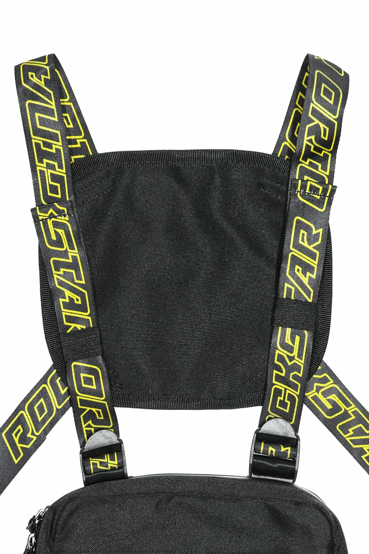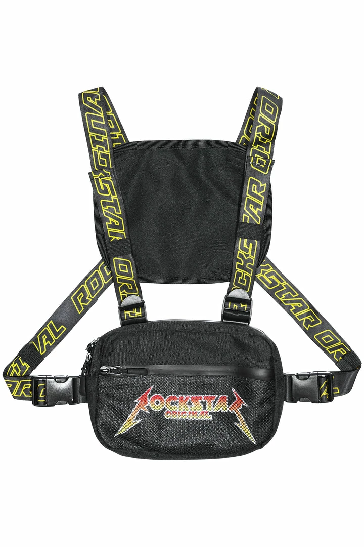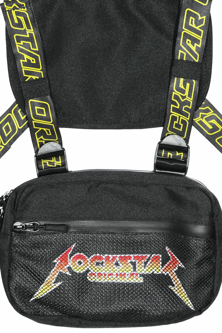 Rockstar Original men’s chest bag featuring adjustable RSO straps with buckle clasps.ย Two tone graphic printed RSO logo withย zipper with mesh pockets.