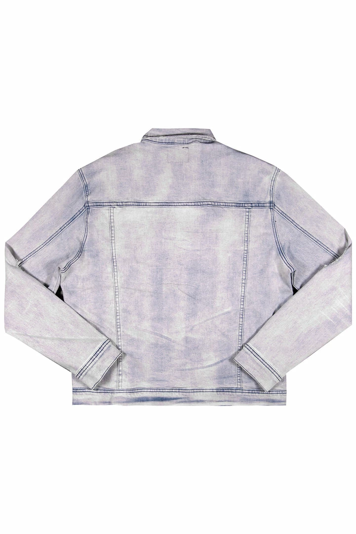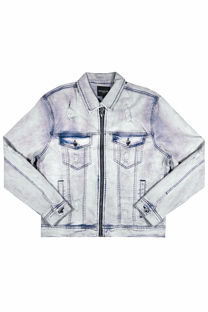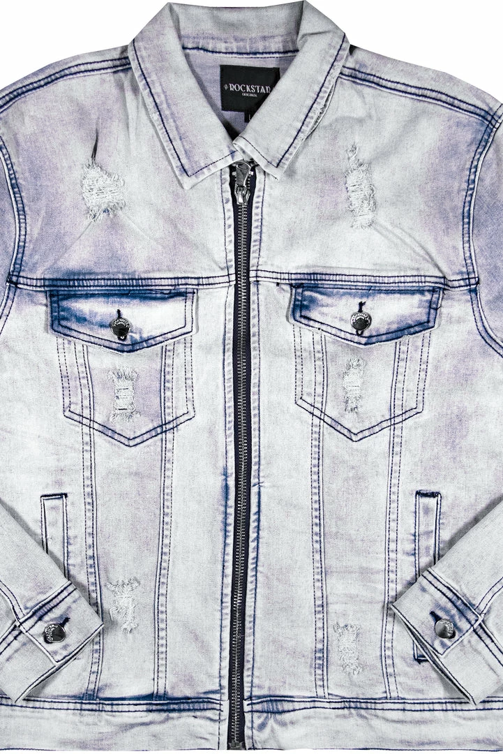 Rockstar Original men’s jacket featuring a light wash with distressed details all throughout. High quality button zipper closure with two front pockets.