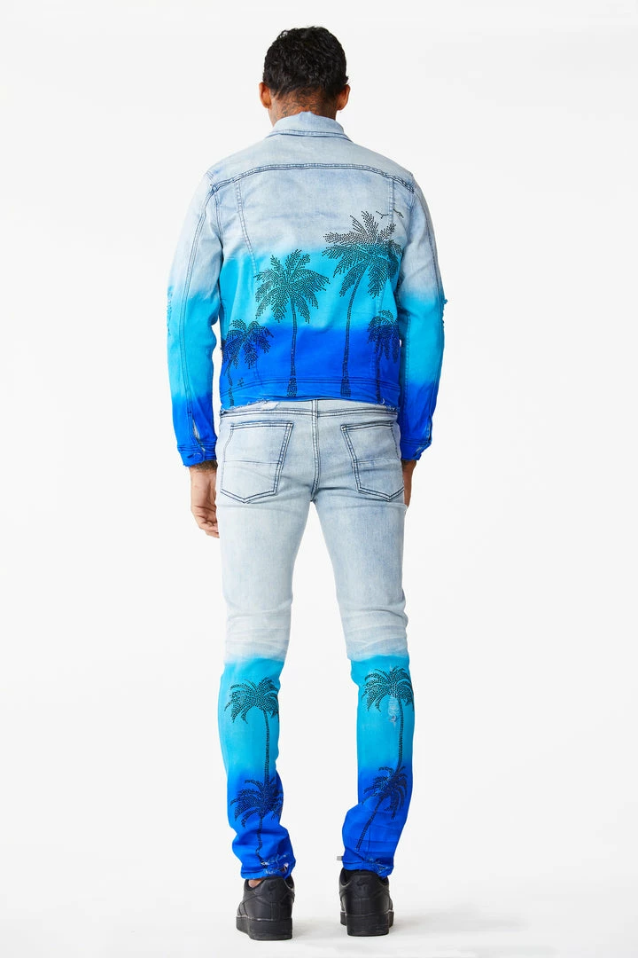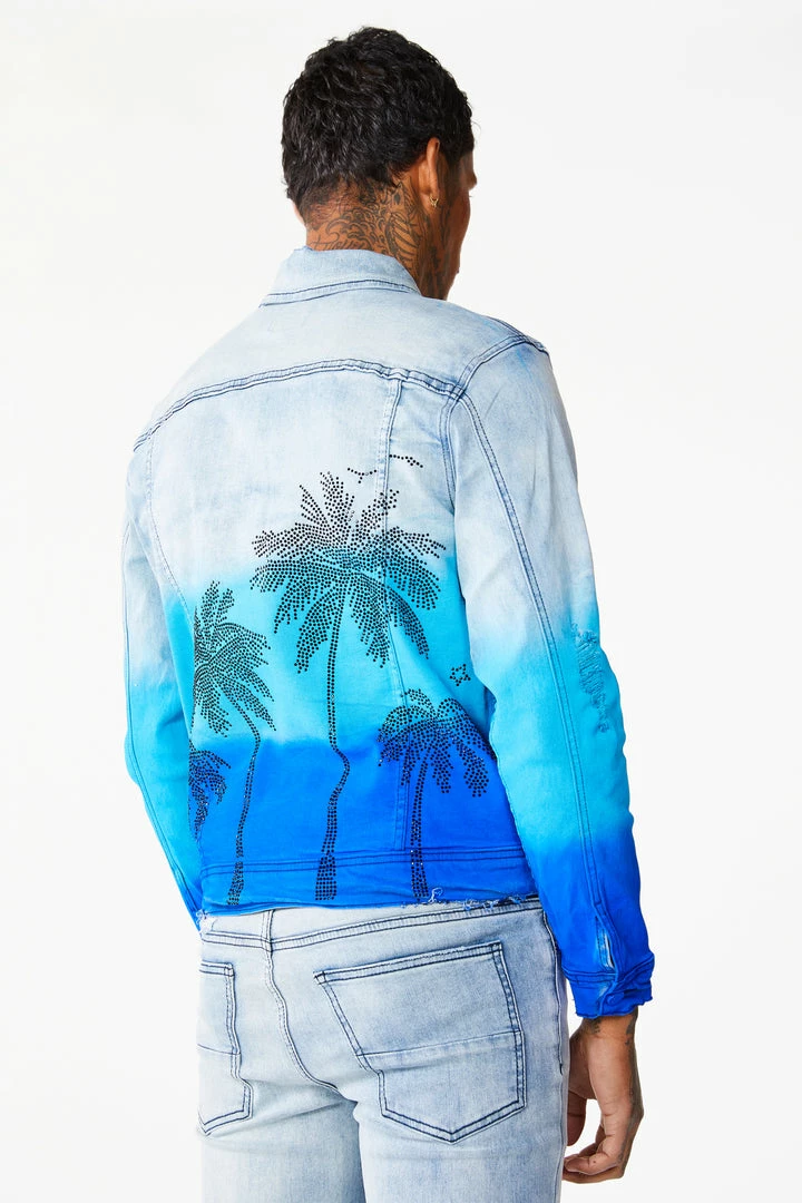 Promo ✔️ MENS DENIM JACKETS TOVI OMBRE CRYSTAL JACKET- BLUE 😀
