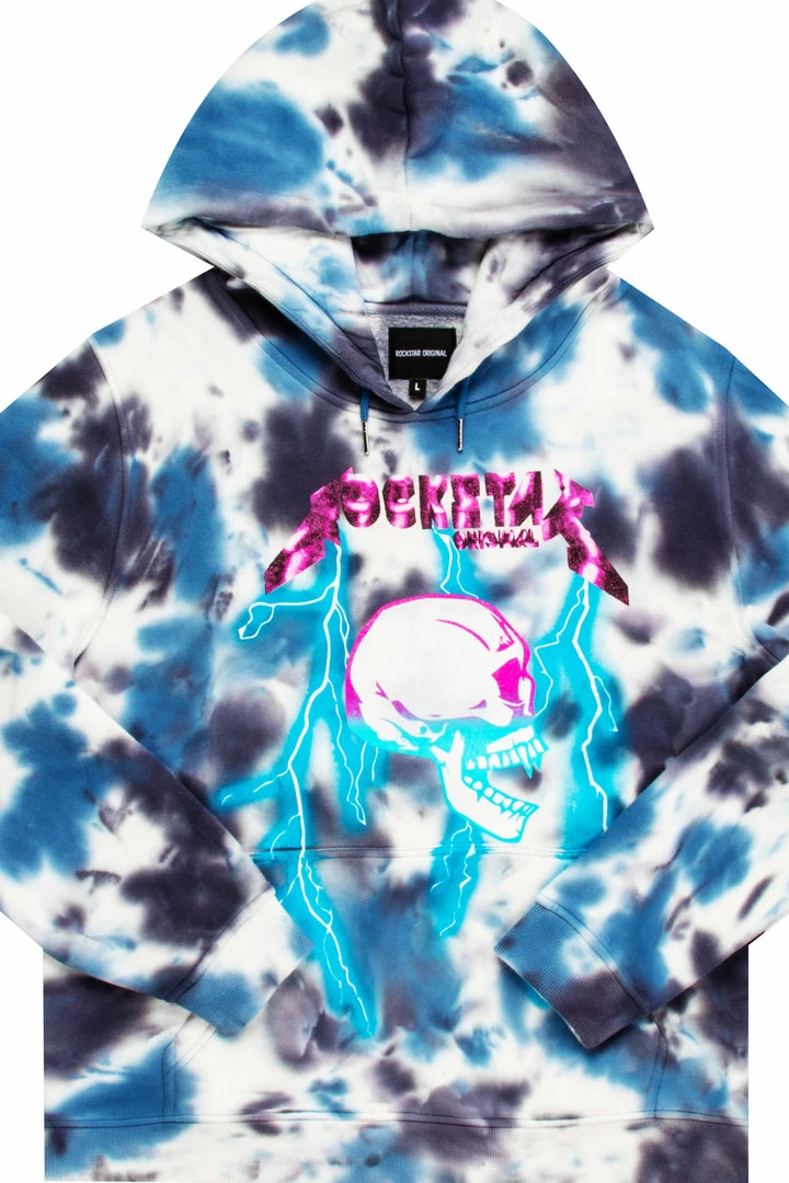 Rockstar Original Men’s hoodie in raging royal blue. Featuringย eye-catching multi color graphic print designing and tie dye wash throughout. Styled with a front pocket, drawstring hood and premium cotton threading for comfort and convenience.