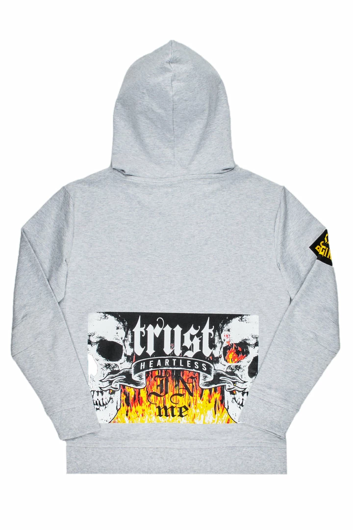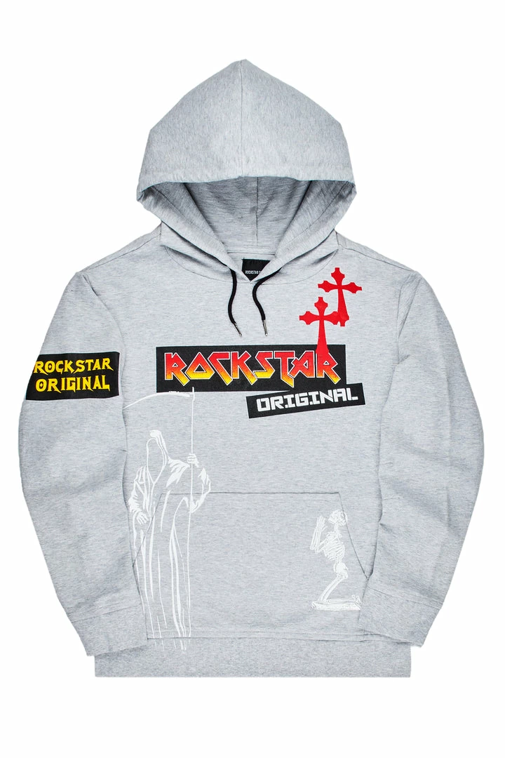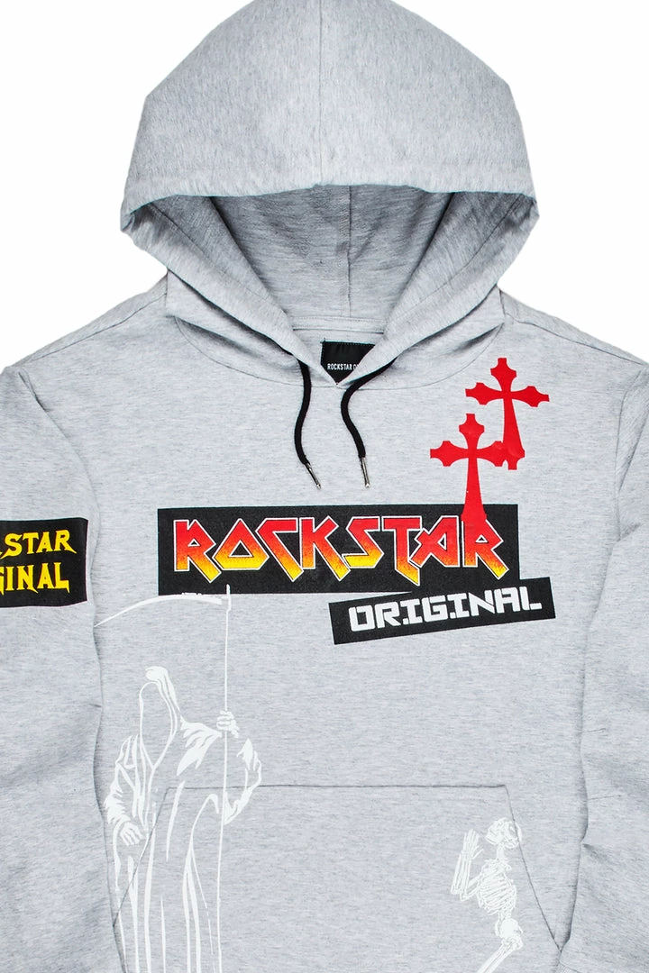 Rockstar Original Men’s hoodie in grey. Featuring a printed ombre RSO logo on the front with a graphic printed posterior logo and printed skeleton graphics to match throughout. Accenting a front pocket, drawstring hood, cuffed hems and premium cotton threading for comfort and versatility.