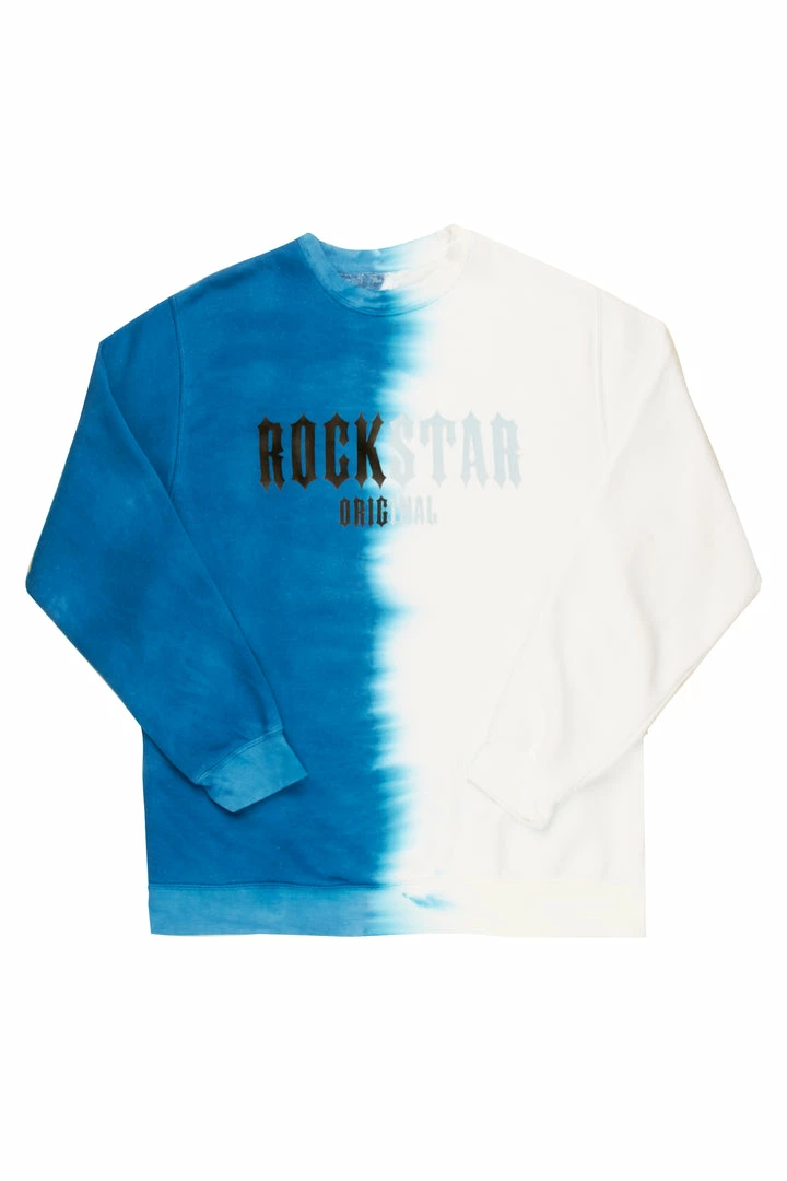 Rockstar Original Men’s crewneck sweatshirt. Featuring a printed RSO logo against a split tie dye design. Accenting cuffed hems and premium cotton threading for the perfect athleisure staple piece.