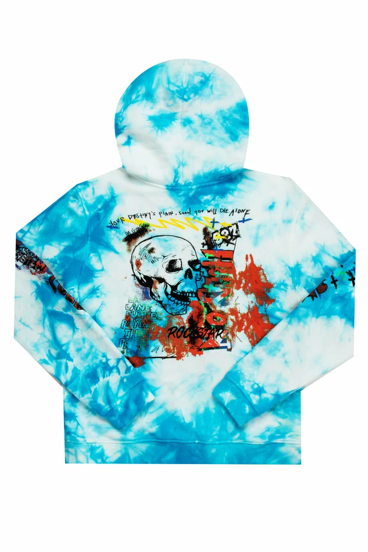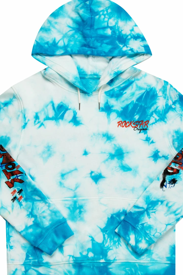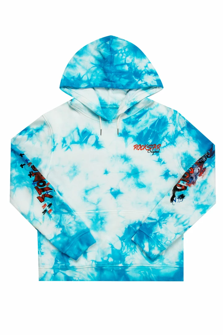 Rockstar Original Men’s hoodie featuring a blue marble tie dye wash and multi color graphic print detailing. Accenting a RSO logo, front pocket and premium cotton threading for comfort and convenience.