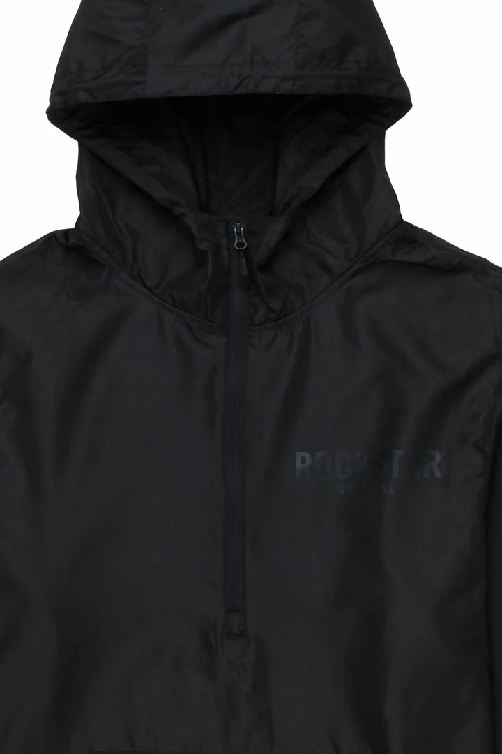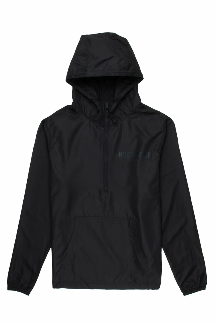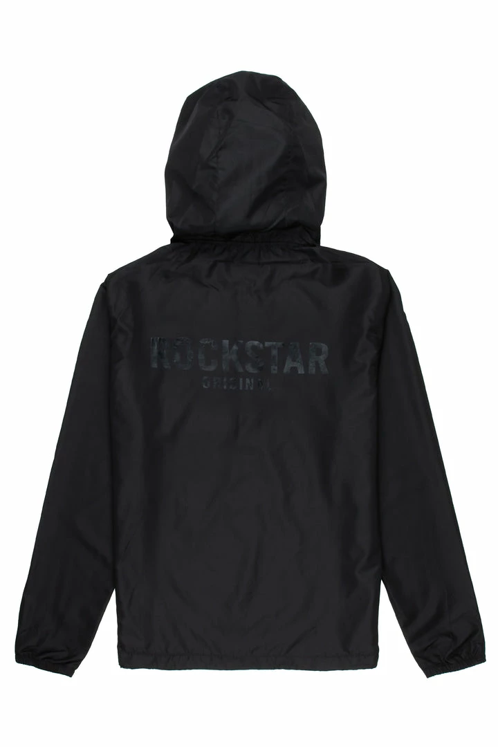 Rockstar Original Men’s urban windbreaker jacket in black. Featuring a classic RSO logo — this new must-have is designed with inner mesh lining on a drawstring hood, mid-length front zip closure and a front pocket. Lightweight polyester fabric throughout will keep you cool and comfortable during any season.
