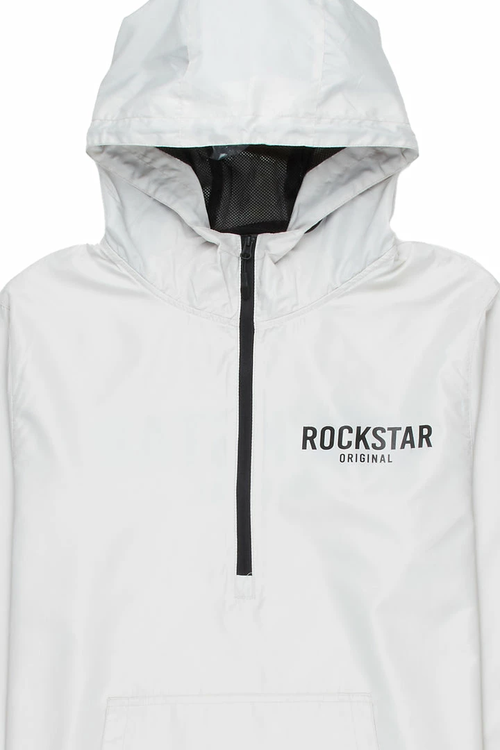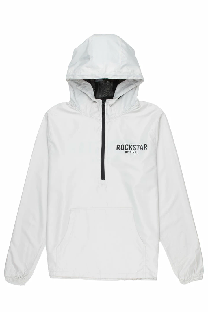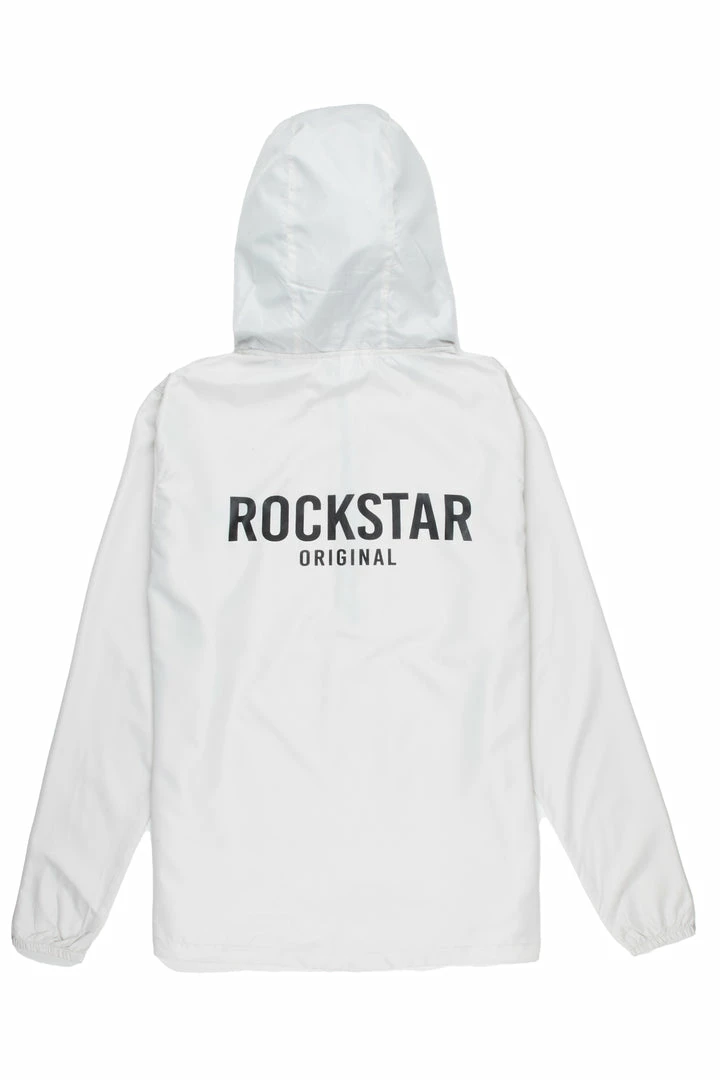 Rockstar Original Men’s windbreaker jacket in grey. Featuring a classic RSO logo — this new must-have is designed with inner mesh lining on a drawstring hood, mid-length front zip closure and a front pocket. Lightweight polyester fabric throughout will keep you cool and comfortable during any season.