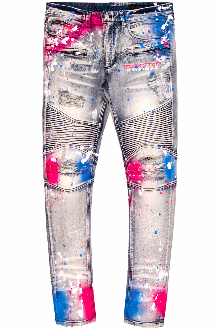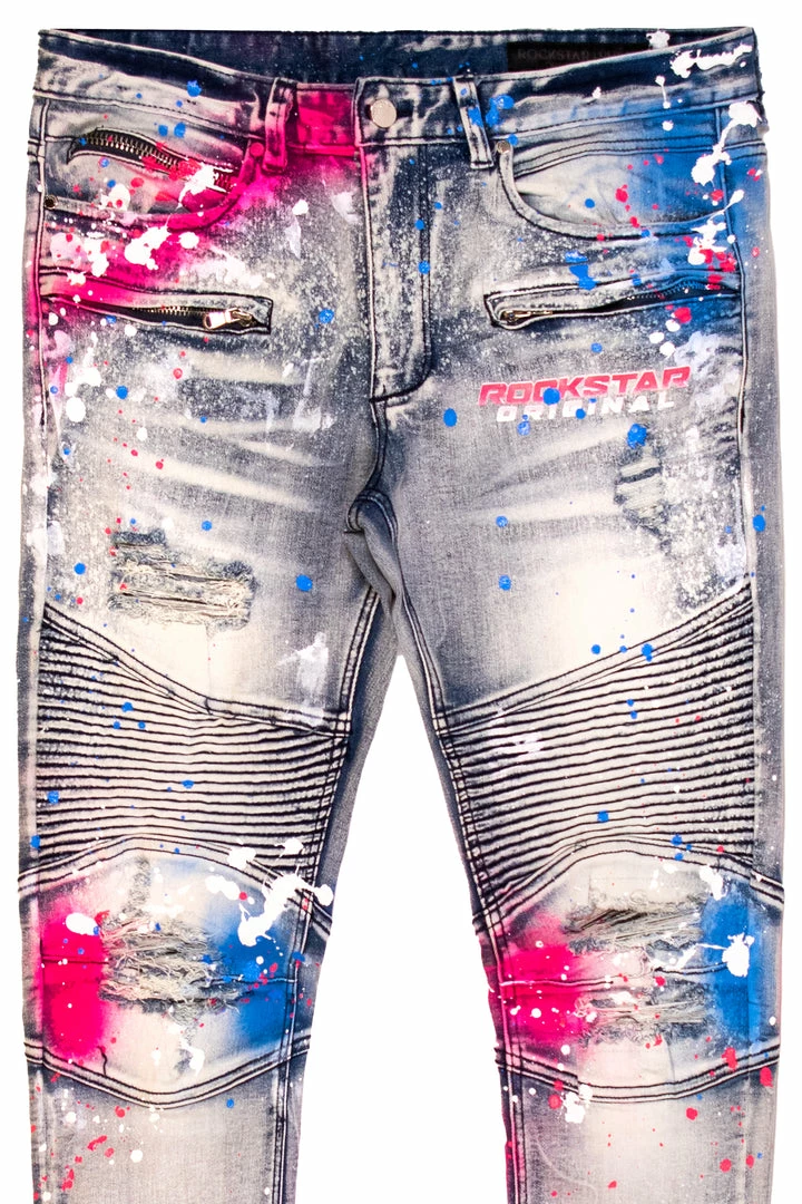 Rockstar Original men’s denimΒ Β featuring a paint splatter design with graffitiΒ highlights all throughout. Distressed details and a graphic printed RSO logo with high quality zipper coin pocket.