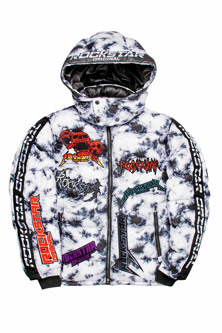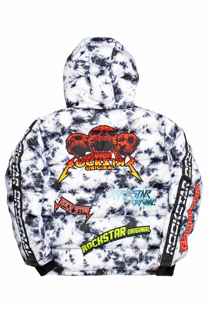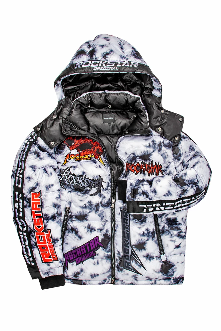 Rockstar Original Men’s puffer jacket in marble. Featuring embroidered RSO logos and graphic patch designing throughout. Accenting versatile material to keep you cool, comfortable and functional. This new must-have bubble coat is styled with a removable button hood, front zipper pockets and a high quality zipper closure.