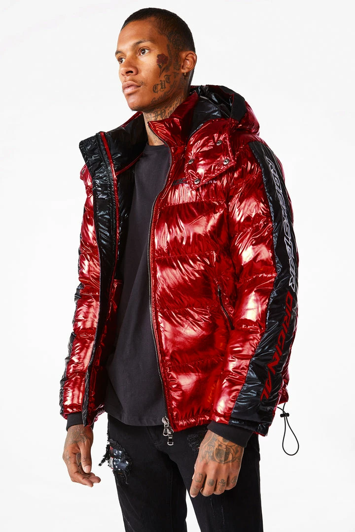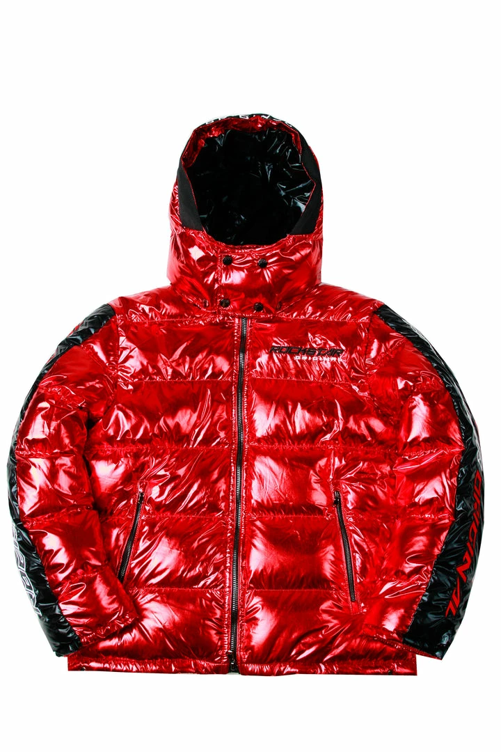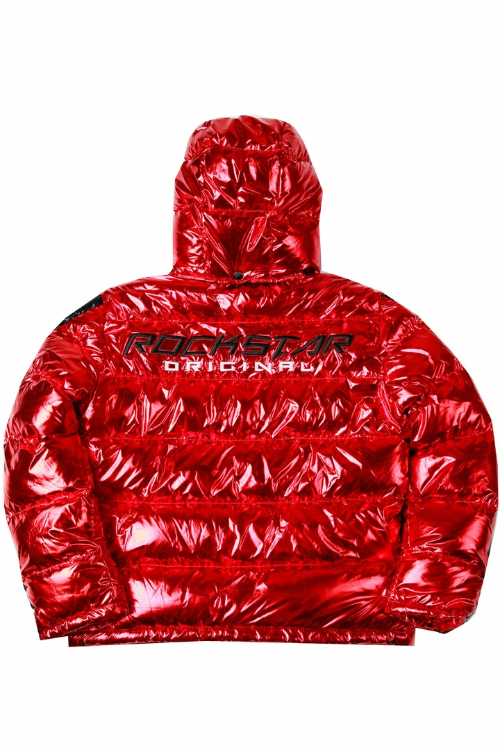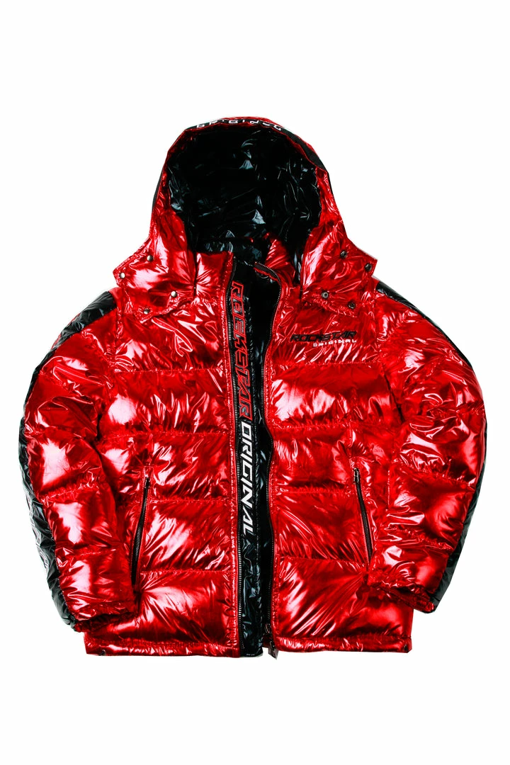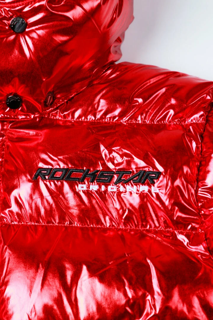 Rockstar Original Men’s puffer jacket in Rockstar red. Featuring embroidered RSO logos andย bold metallicย designing throughout.ย Accenting versatile material to keep you cool, comfortable and functional. Thisย newย must-have bubble coatย is styled with a removable button hood, front zipper pocketsย and aย high quality zipper closure.ย
