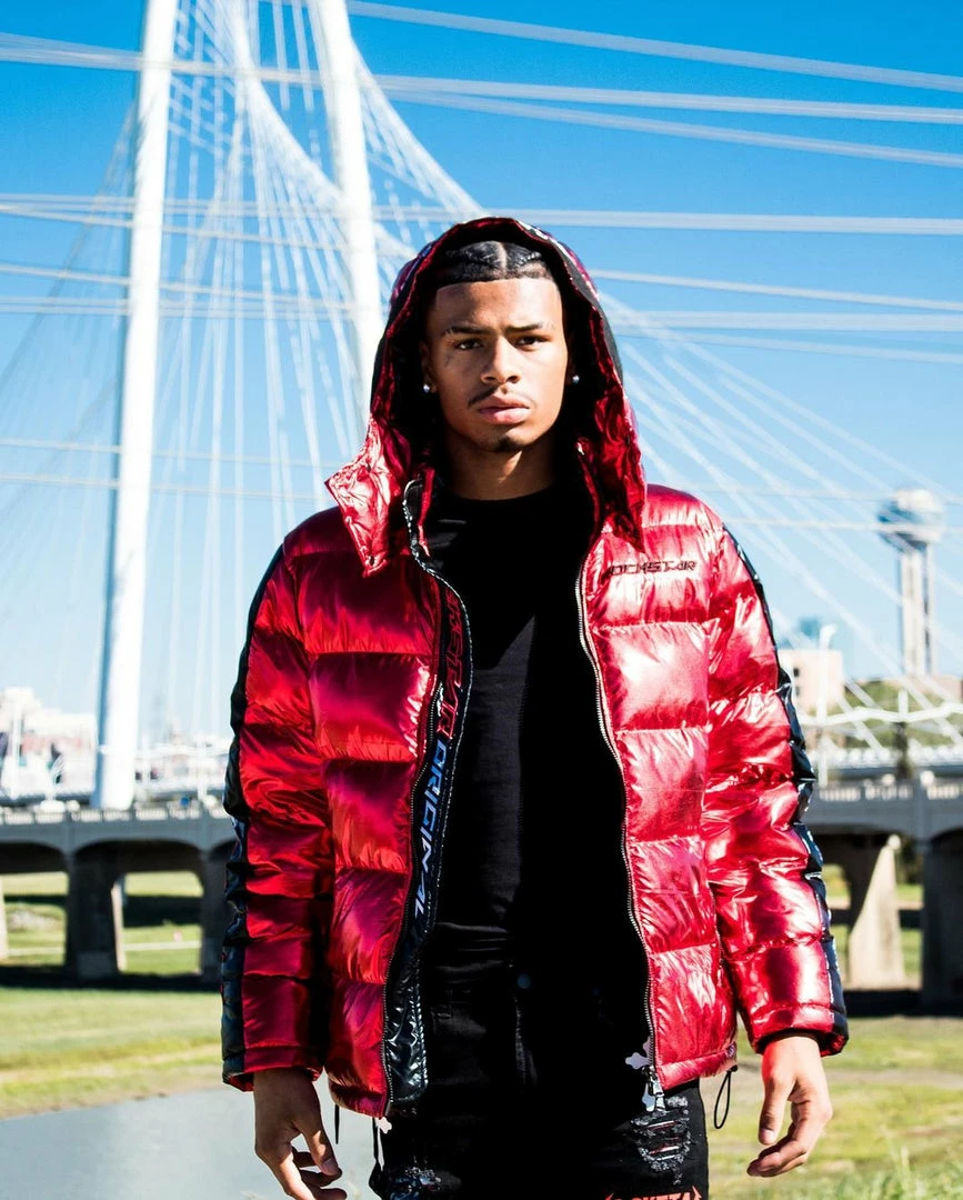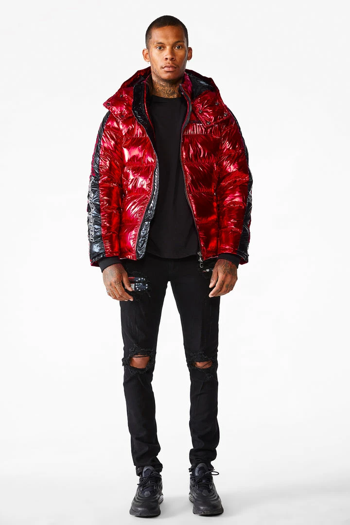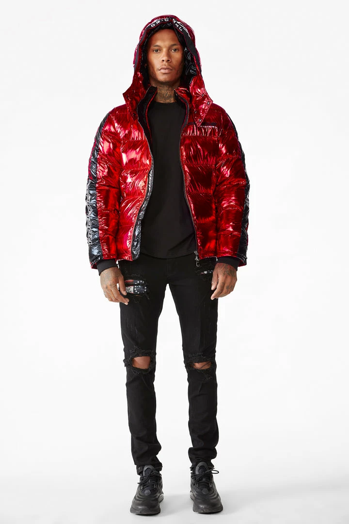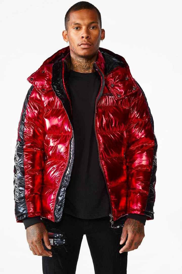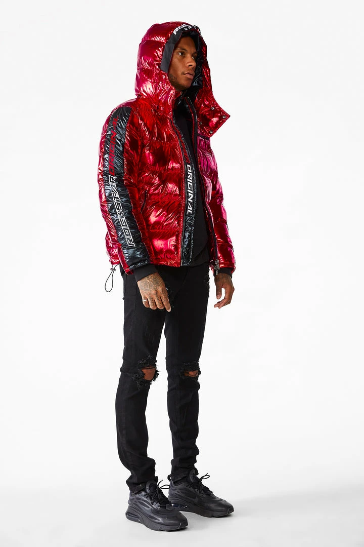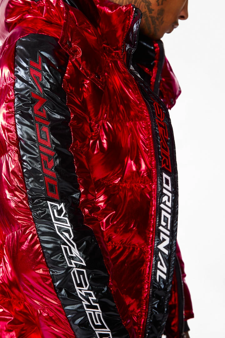 Rockstar Original Men’s puffer jacket in Rockstar red. Featuring embroidered RSO logos andย bold metallicย designing throughout.ย Accenting versatile material to keep you cool, comfortable and functional. Thisย newย must-have bubble coatย is styled with a removable button hood, front zipper pocketsย and aย high quality zipper closure.ย
