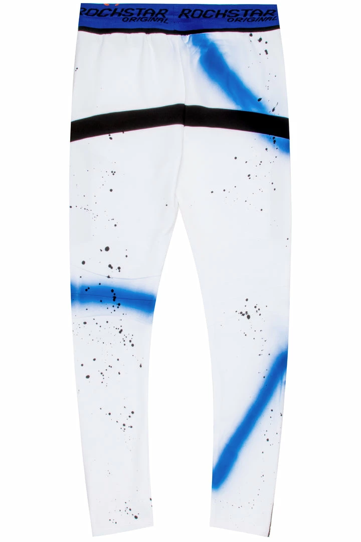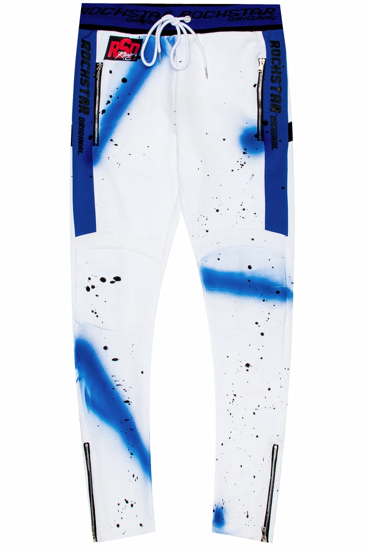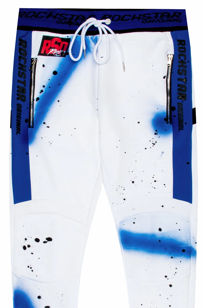 Rockstar Original Men’s track pant in pure white. Featuring a color block design with printed RSO logos. Accenting a drawstring waistband, high quality zipper pockets and ankle zipper hems.