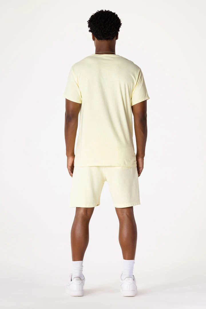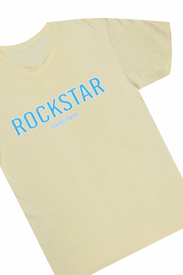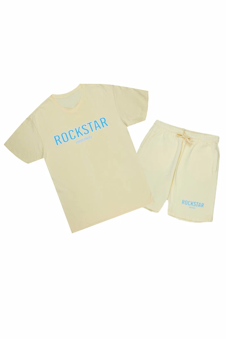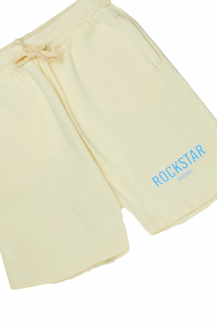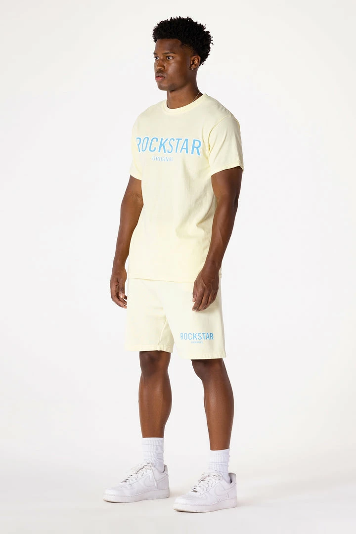 Rockstar Original Men’s two-piece essential short set in yellow. Featuring clean RSO logos on the top and bottom. Tee accents a crew neckline with a relaxed fit while bottoms accent a drawstring waistband and side pockets. Designed with luxurious cotton for a super soft internal finish.