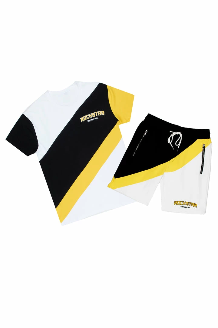 Rockstar Original Men’s two-piece short set inย yellow.ย Featuringย printedย RSO logos with a color block design on the top and bottoms. Top accents a crewneck line, lightweight wear and premium cotton threading while bottoms accent a ribbed drawstring waistband with multiple pockets throughout for style and convenience.