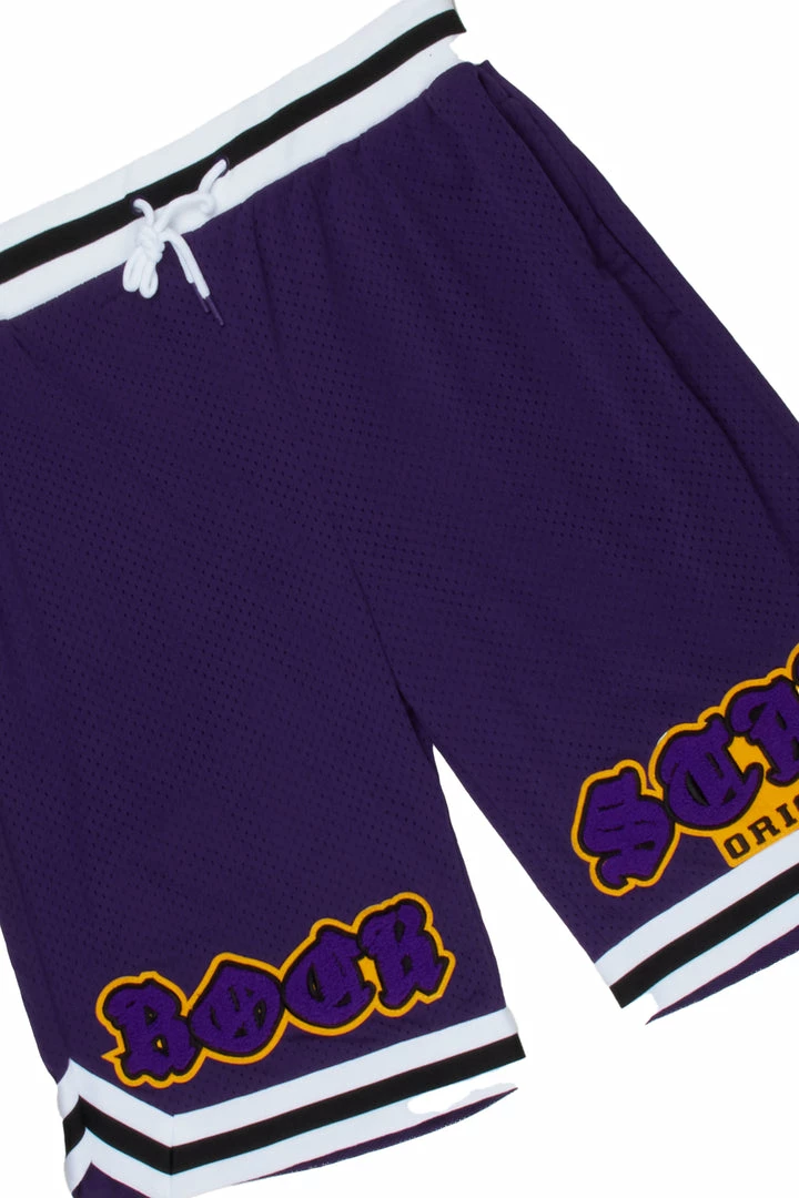Rockstar Original Men’s two-piece short set inย purple. Featuring printed RSO logos on the top and bottoms with varsity graphics throughout to match. Jersey accents rib knit sleeveless arms and neckline with mesh fabric while bottoms accent a ribbed drawstring waistband with racer stripe designing and side pockets.