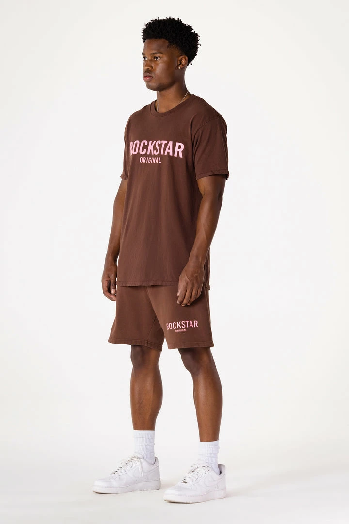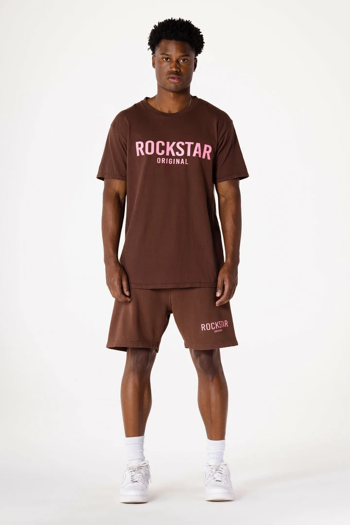 Rockstar Original Men’s two-piece essential short set inย brown. Featuring cleanย RSO logosย on the top and bottom. Tee accents aย crew neckline with a relaxed fitย while bottoms accent a drawstring waistband and side pockets. Designed with luxurious cotton for a super soft internal finish.