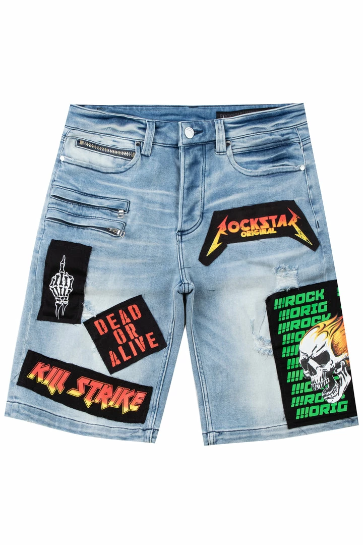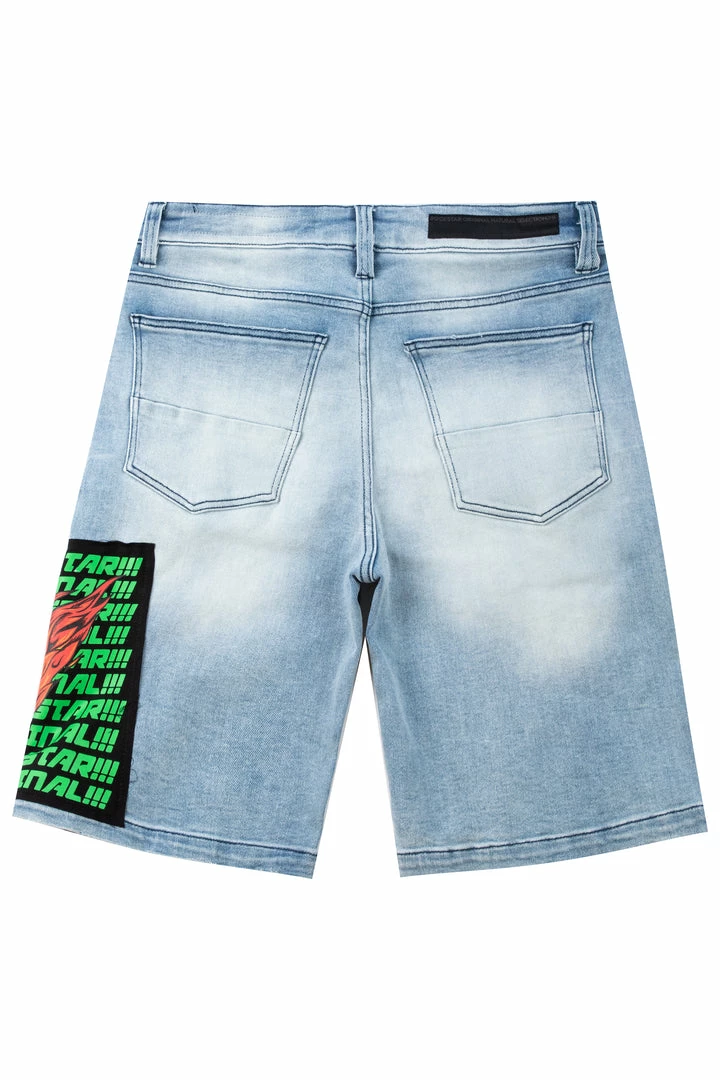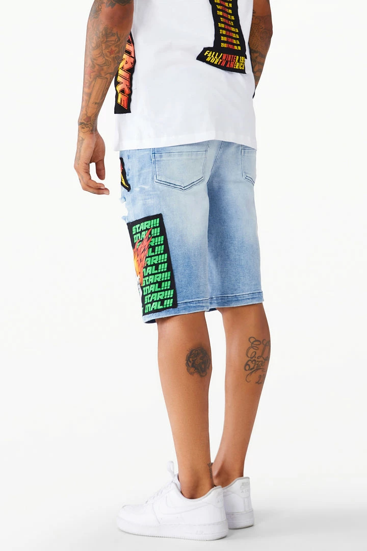Budget ❤️ MENS SHORTS CANNON PATCHWORK DENIM SHORT- LIGHT WASH 🥰