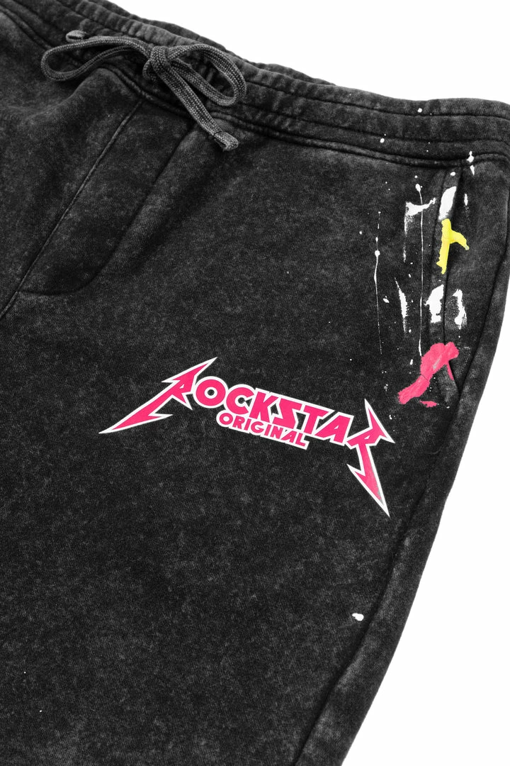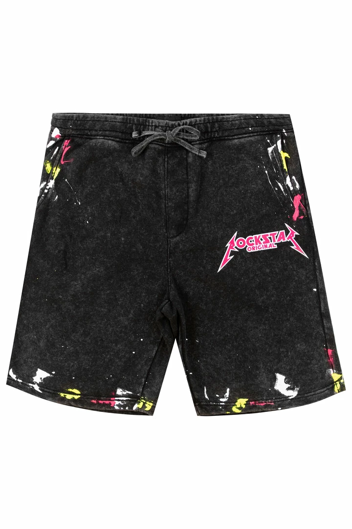 Rockstar Original men’s shorts featuring a relaxed fit with RSO logo in front and multi paint splatter all throughout. Drawstring waistband made with the softest premium fabric.