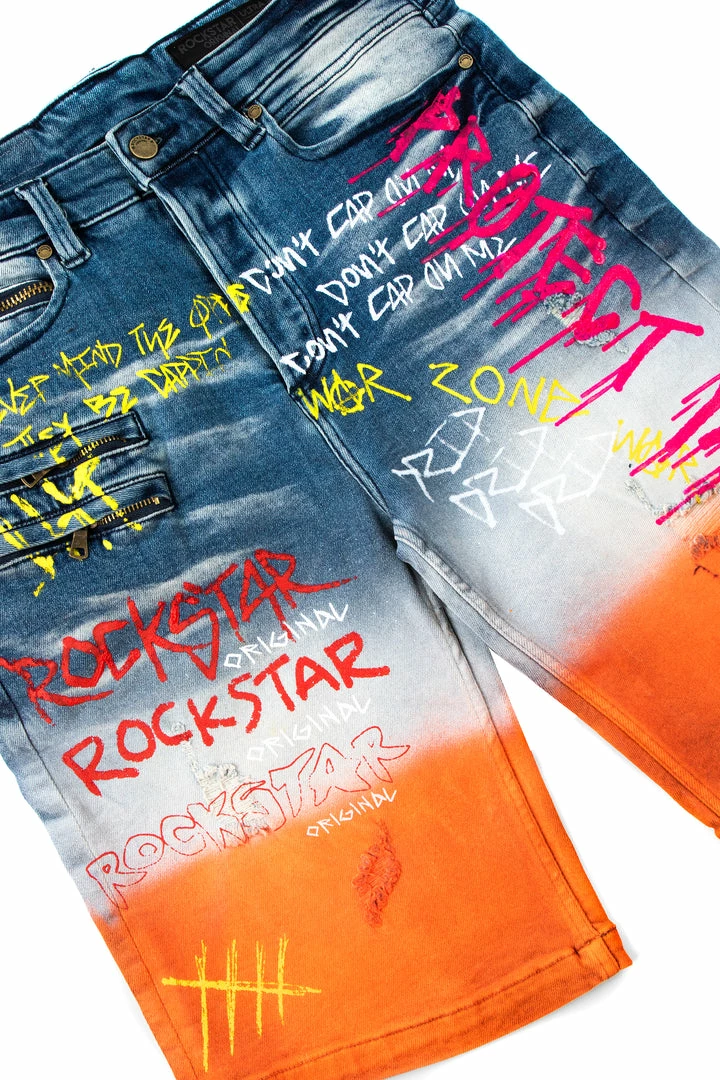 Rockstar Original men’s shorts featuring an ombre color design with multi graphic prints all throughout. High quality zipper coin pocket.