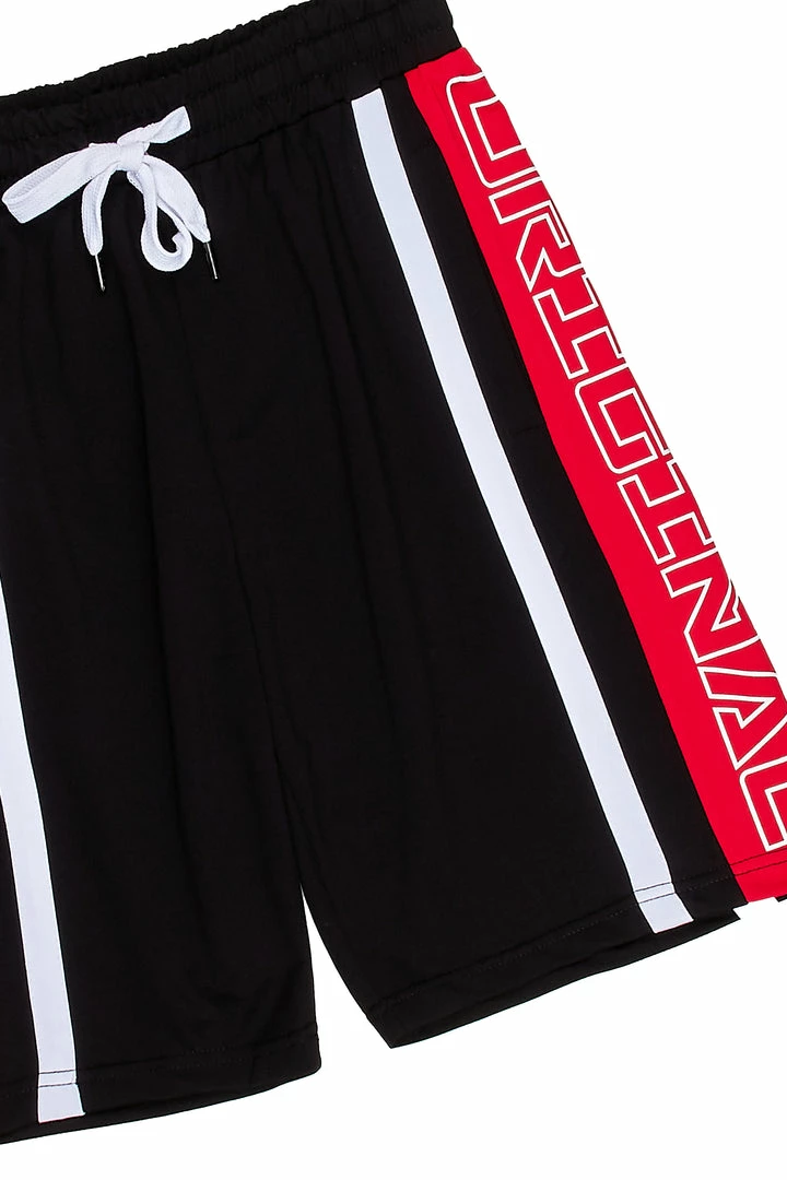 Rockstar Original Men’s shorts inย black. Featuring printed RSO logos with color block designing. Accenting an elastic drawstring waistband and pocketsย for a comfortable and convenient staple piece.ย
