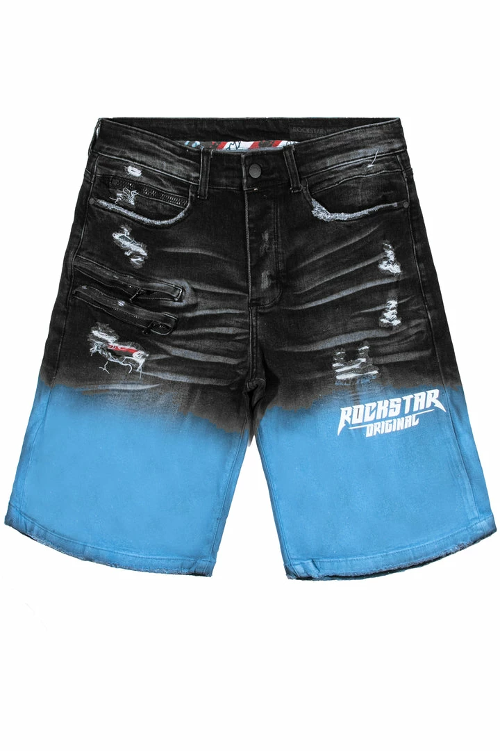 Rockstar Original men’s shorts featuring aย light wash with distressed details all throughout. Light blue paint design with a graphic printed RSO logo. High quality zipper coin pocket.