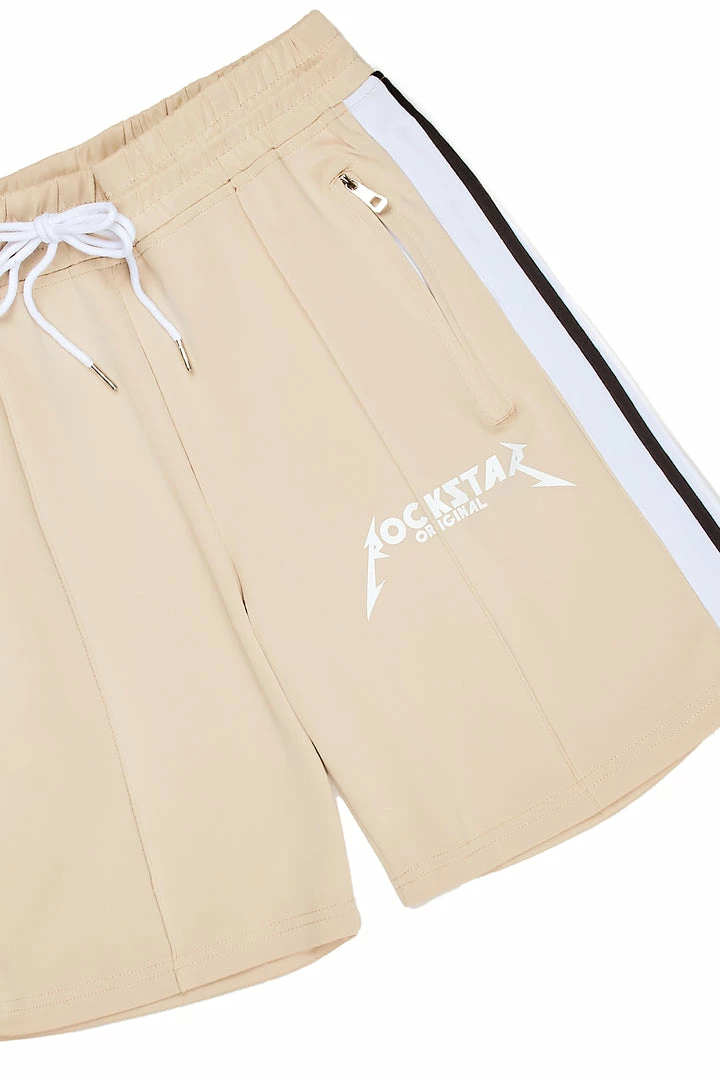 Rockstar Original Men’s short in beige. Featuring a printed RSO logo on the leg with embroidered side stripe details. Accenting a ribbed drawstring waistband with high-quality zipper pockets and a relaxed fit.