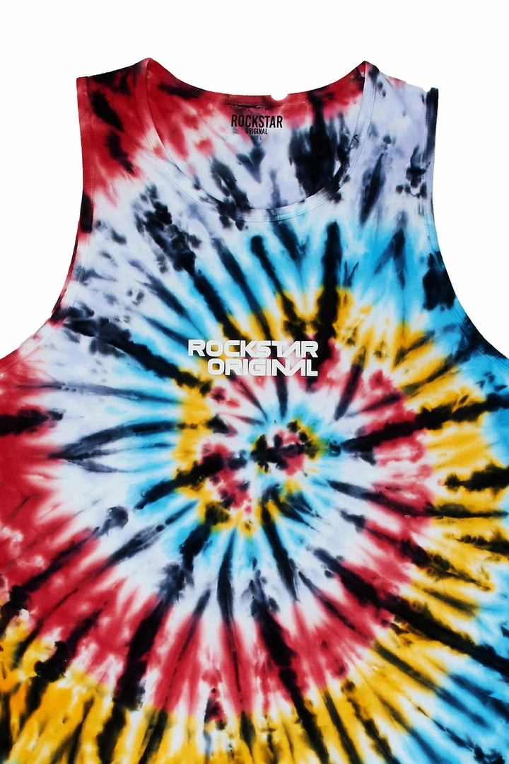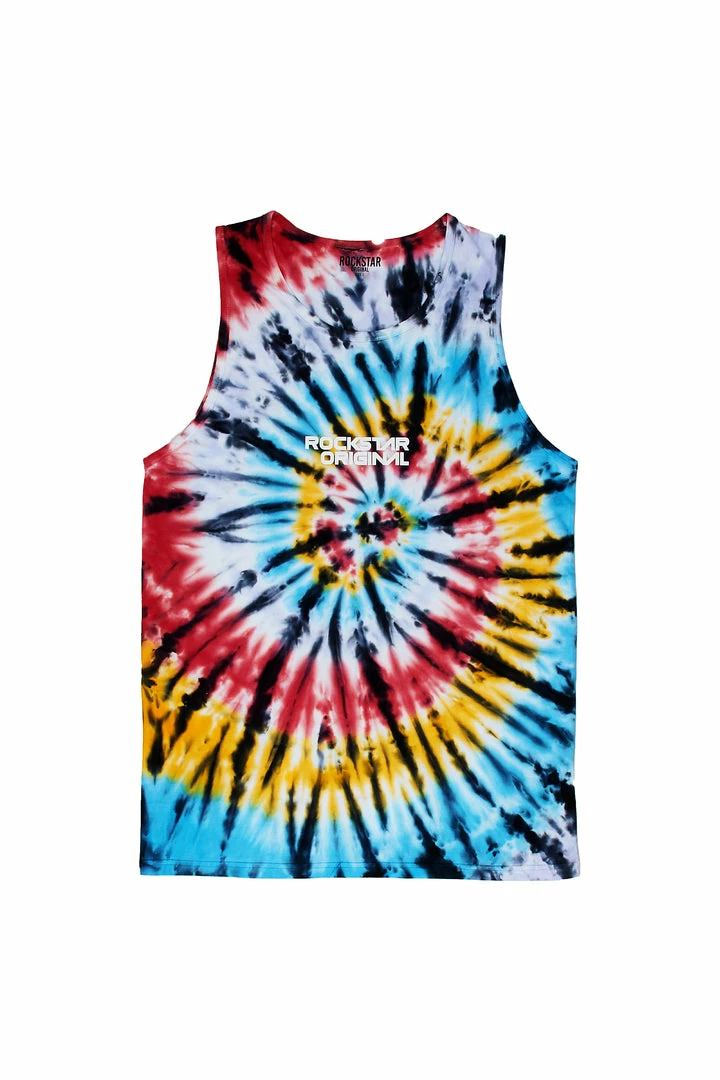 Rockstar Original Men’s tank in multi color tie-dye. Featuring a printed RSO logo across the chest with a crew neckline and relaxed fit. This essential tank top is made with premium cotton threading for all day comfort.