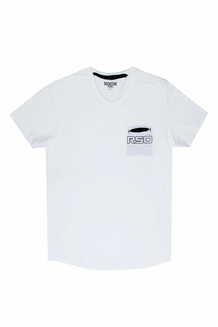 Rockstar Original Men’s tee in pure white. Featuring a printed RSO logo on the chest with a V-neckline and relaxed fit. This essential tee is made with premium cotton threading for all day comfort.