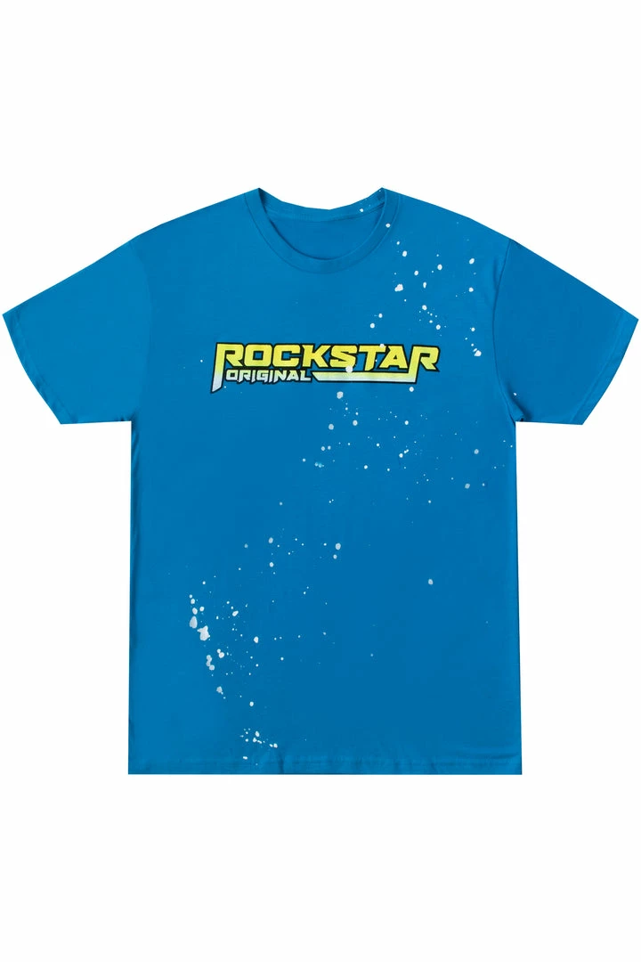 Rockstar Original men’s tee featuring a light paint splatter with a graphic printed RSO logo. Made with premium cotton.