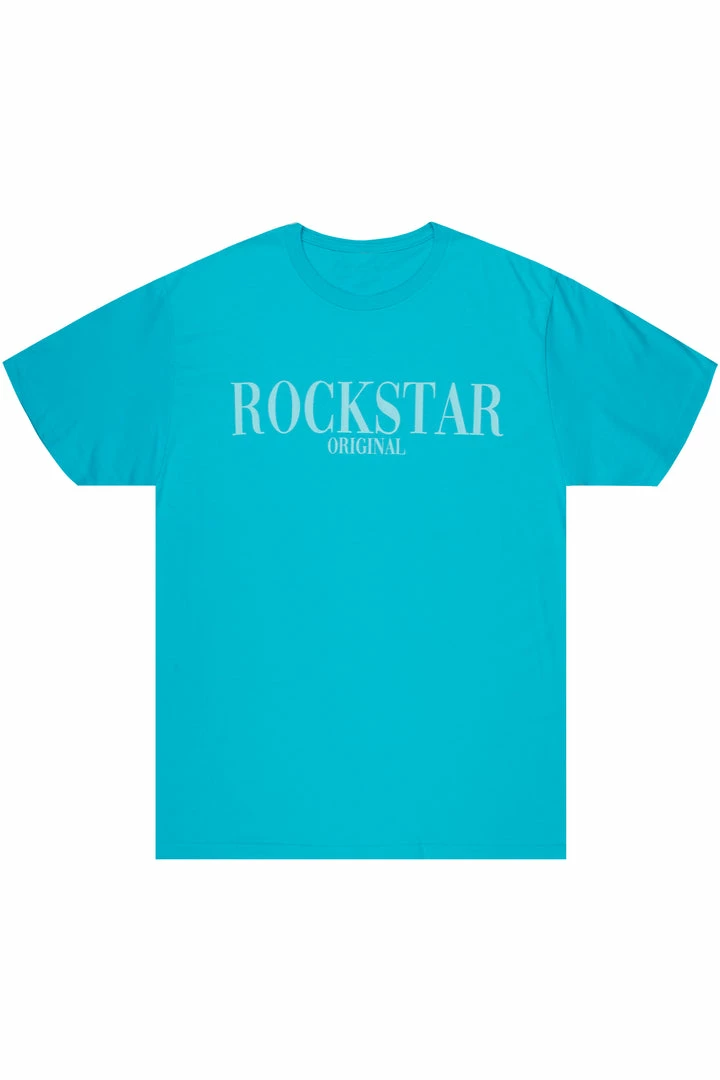 Rockstar Original Men’s tee in aqua. Featuring a velvet flocking RSO logo, crew necklineΒ and relaxed fit. This essential tee is made with premium cotton threading for all dayΒ comfort.