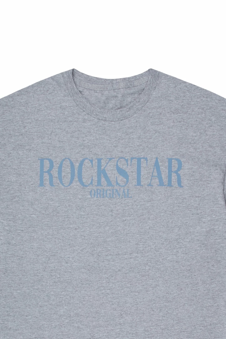Rockstar Original Men’s tee in heather grey. Featuring a velvet flocking RSO logo, crew neckline and relaxed fit. This essential tee is made with premium cotton threading for all day comfort.