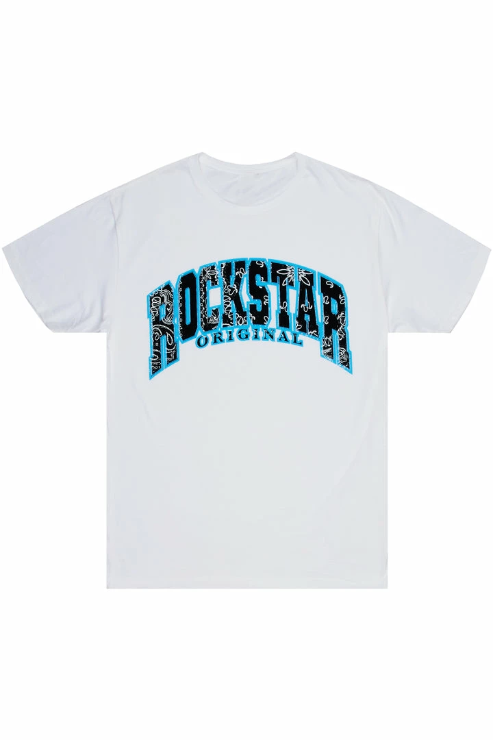 Rockstar Original Men’s essential tee inย white.ย Featuring a paisley printed RSO logo across the chest. Accentingย a crew neckline and lightweight, luxurious cotton for an ultra soft must-have style.