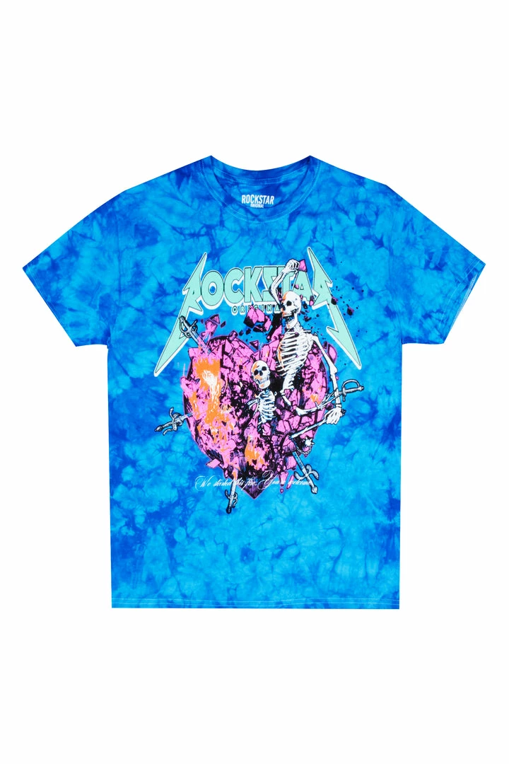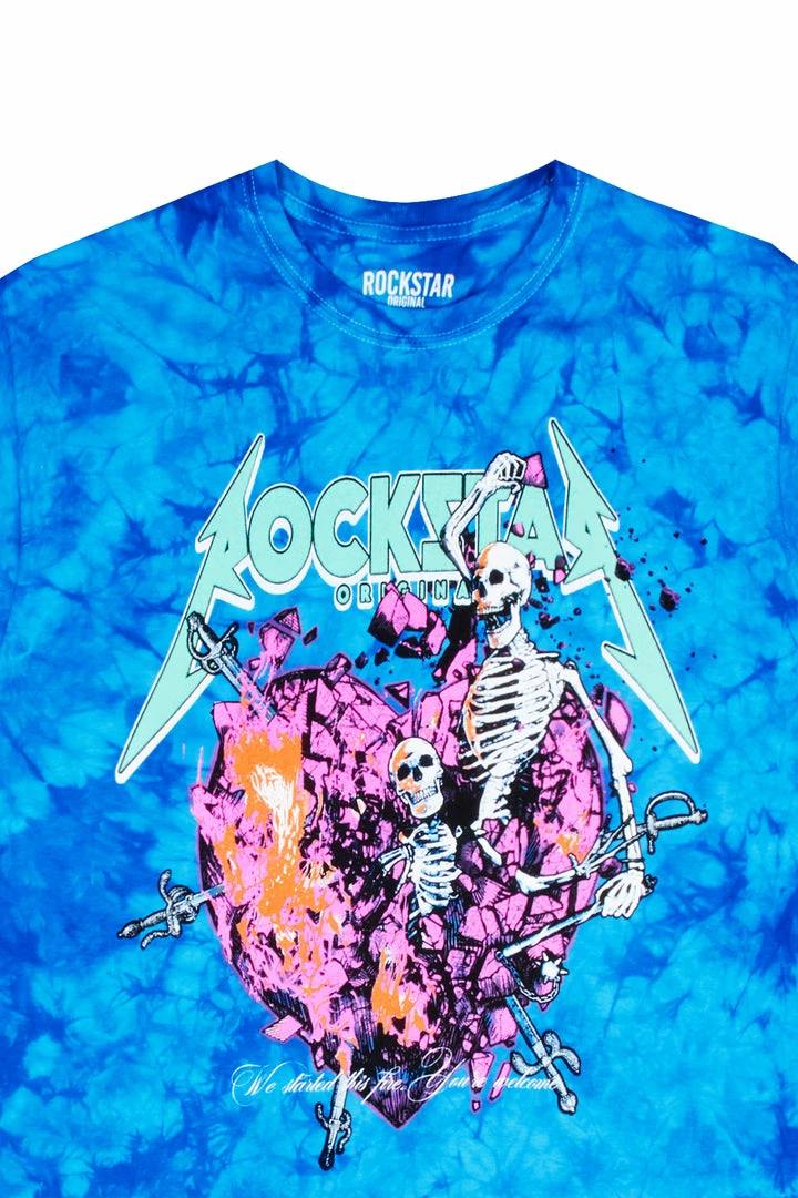 Rockstar Original Men’s tee inย tie-dye blue. Featuring aย RSOย logo with a multi color skeleton graphic to match. Accenting a relaxed fit with a crew necklineย and premium cotton threading for maximum comfort and style.ย