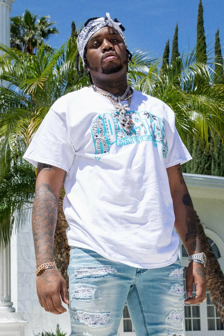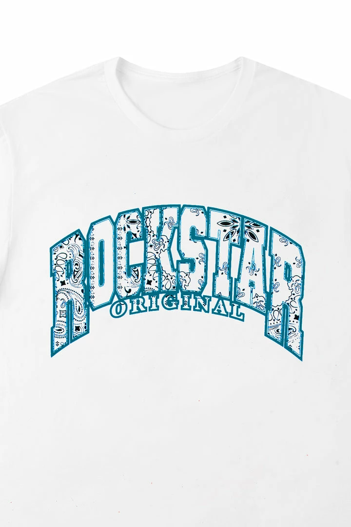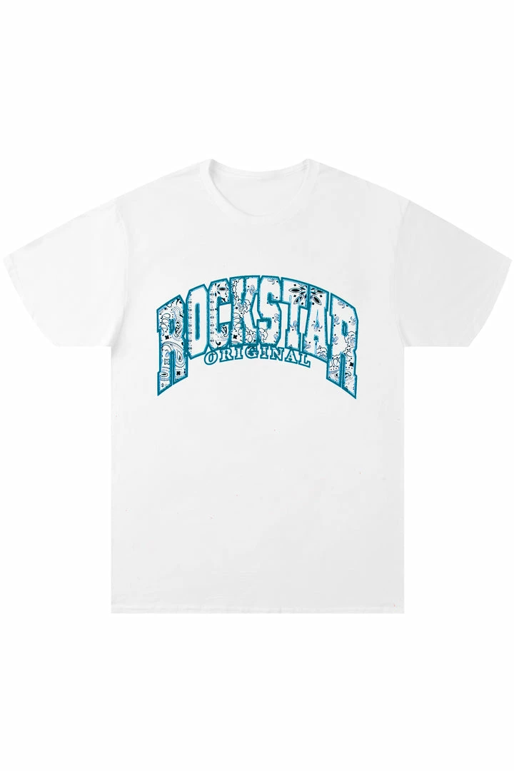 Fivio Foreign xย Rockstar Original Men’s tee in white. Featuring an enlarged paisley printed RSO logo across the chest, a crew necklineย and relaxed fit. This essential tee is made with premium cotton threading for all day wear.