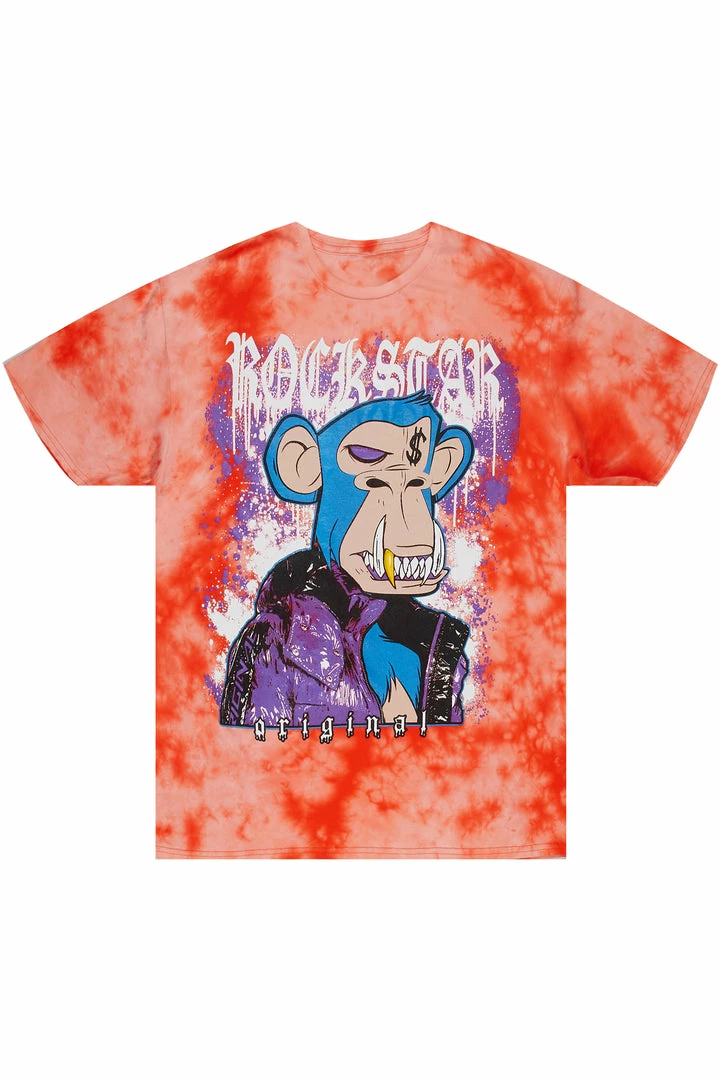 Rockstar Original Men’s tee in tie-dye orange. Featuring a printed RSO logo with a multi color graphic to match. This unique tee accents a crewneck line, lightweight wear and premium cotton threading for style and comfort.