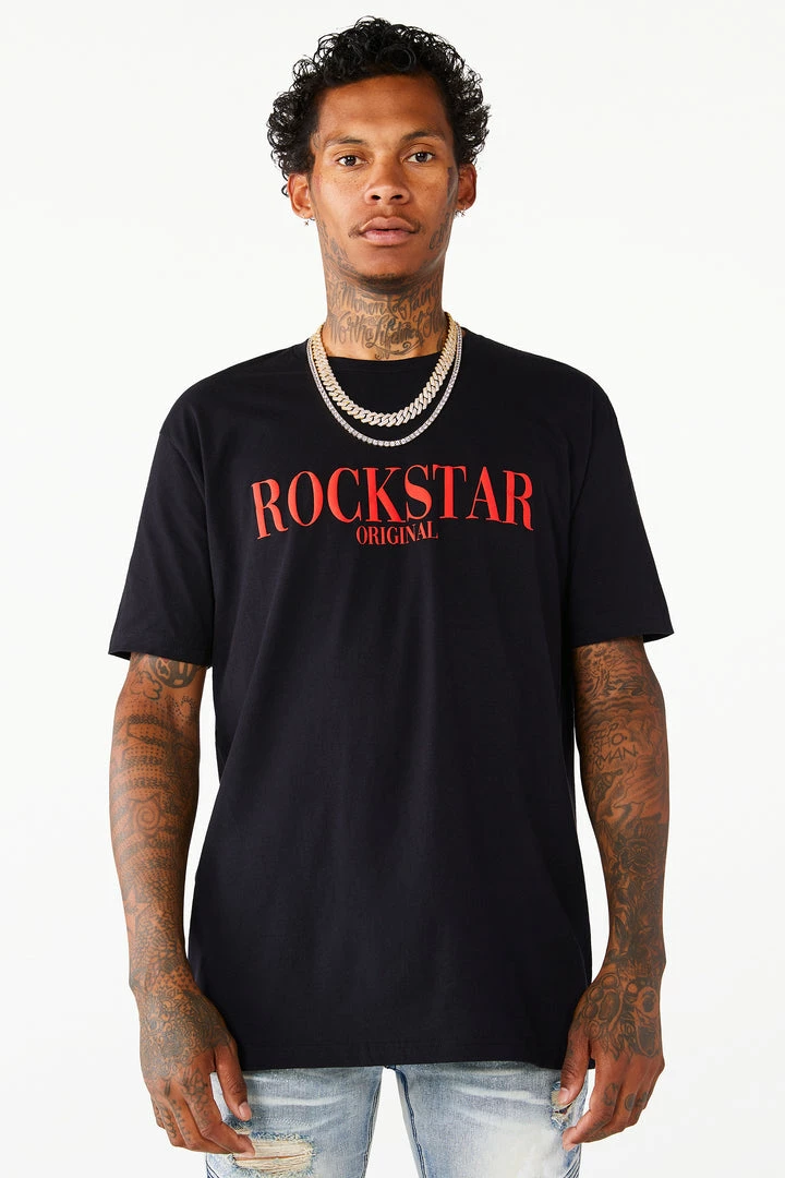 Rockstar Original Men’s tee in black. Featuring a puff printed RSO logo, crew neckline and relaxed fit. This essential tee is made with premium cotton threading for all day comfort.