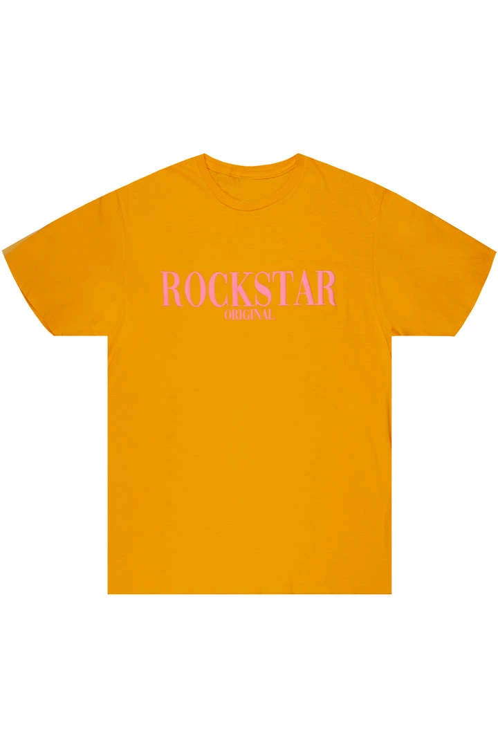 Rockstar Original Men’s tee in orange. Featuring a puff printed RSO logo, crew neckline and relaxed fit. This essential tee is made with premium cotton threading for all day comfort.