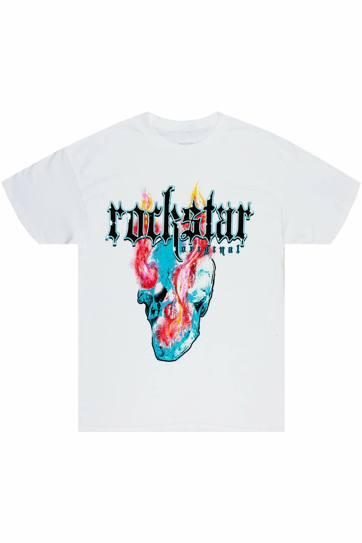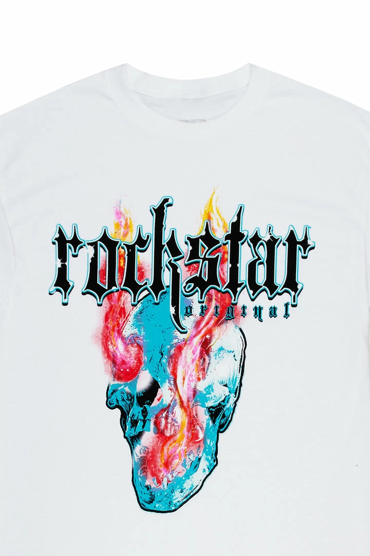 Rockstar Original Men’s tee in white. Featuring a RSO logo with a multi color graphic to match. Accenting a relaxed fit with a crew neckline and premium cotton threading for maximum comfort and style.