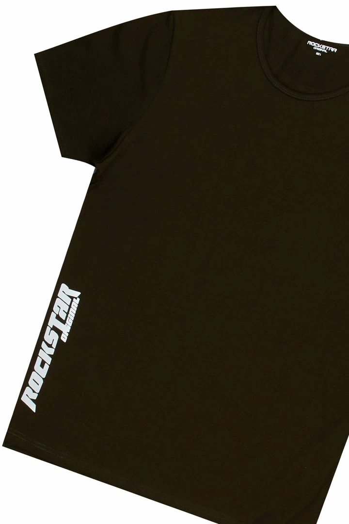 Rockstar Original Men’s tee in olive green. Featuring a printed RSO logo at the hem with a crew neckline and relaxed fit. This essential tee is made with premium cotton threading for all day comfort.