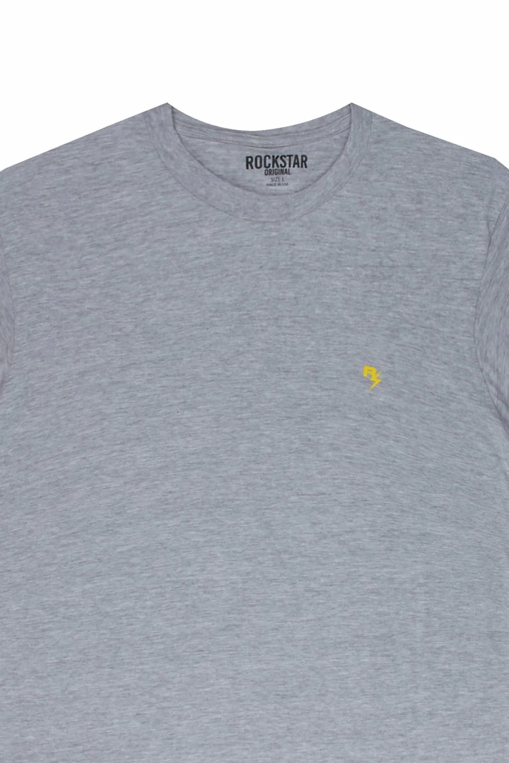 Rockstar Original Men’s tee in heather grey. Featuring a printed RSO logo on the chest with a crew neckline and relaxed fit. This essential tee is made with premium cotton threading for all day comfort.