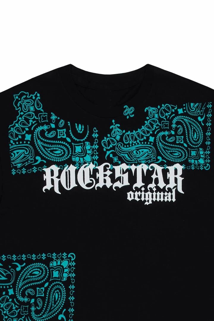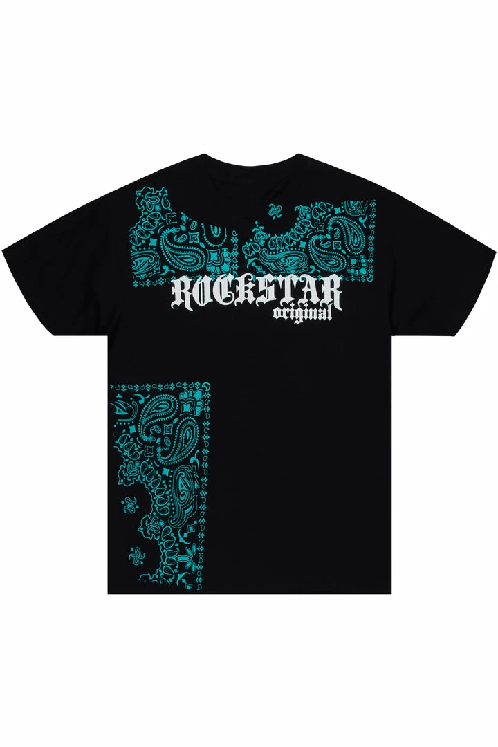 ๏ปฟRockstar Original Men’s tee inย aqua. Featuring a printed RSO logo with paisley graphics to match. This unique tee accents a crewneck line, lightweight wear and premium cotton threading for style and comfort.ย